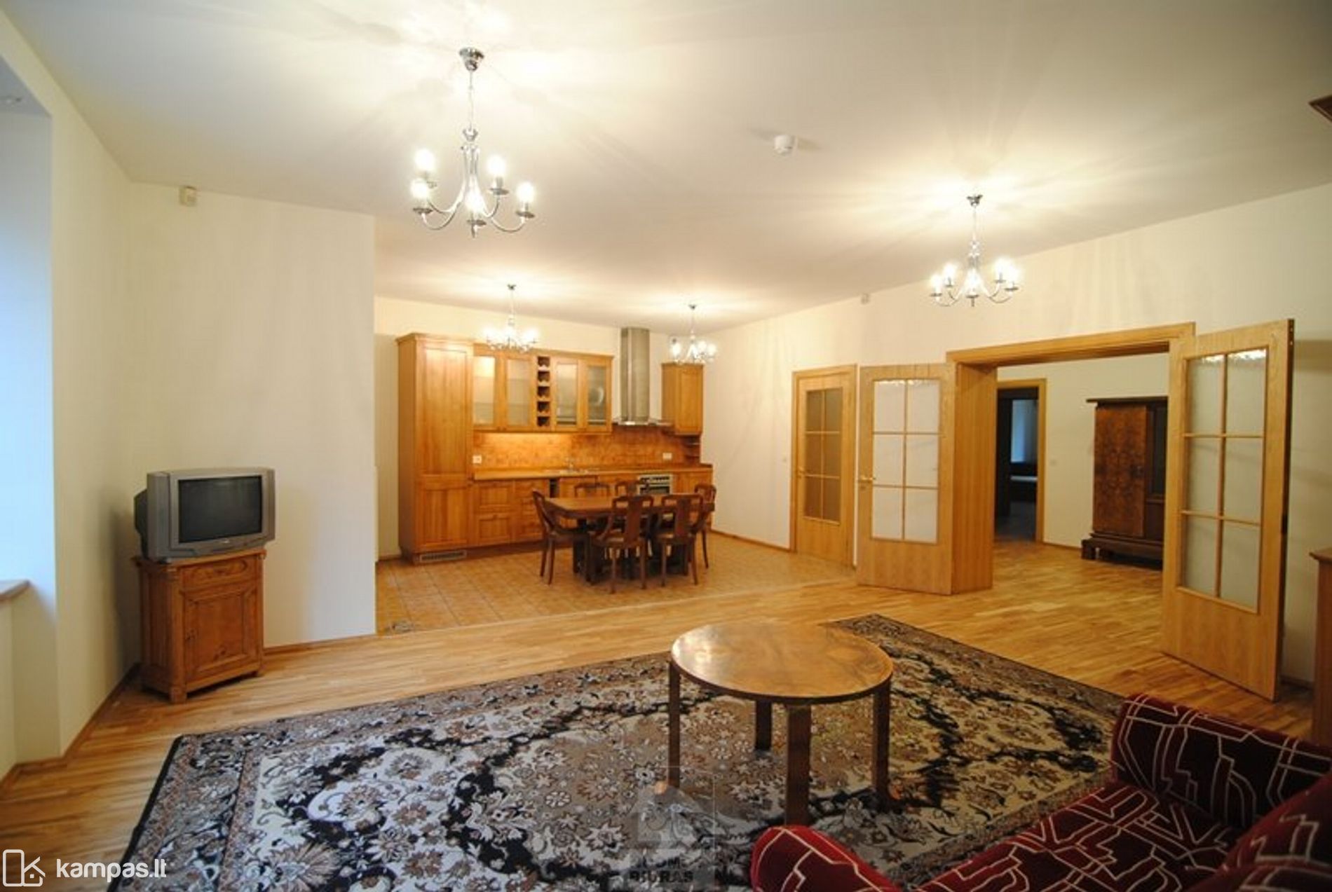 Išplanavimas: erdvus holas, atskira svetainė su virtuve ir balkonu, 2 atskiri miegamieji, tamsus kambarys, vonios kambarys ir sanmazgas.
