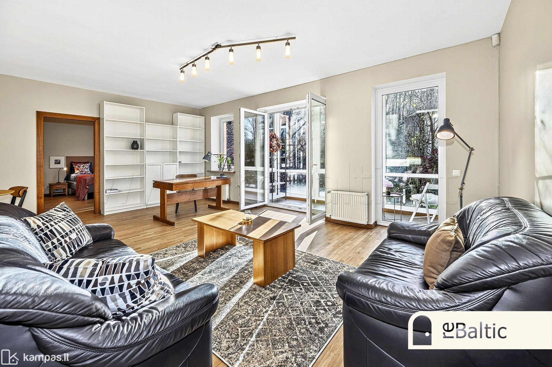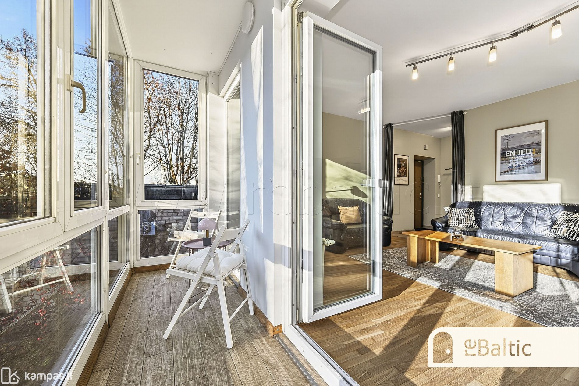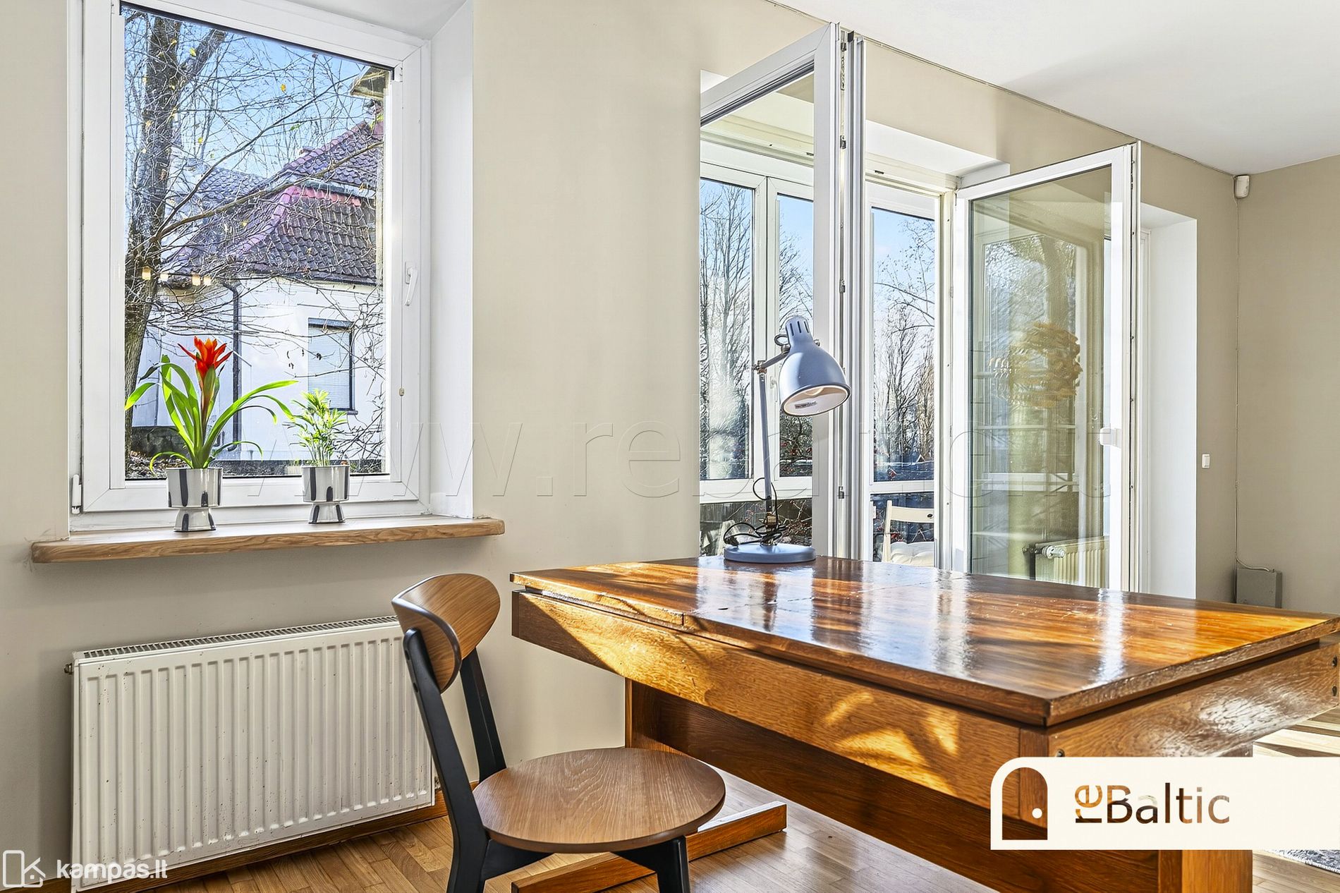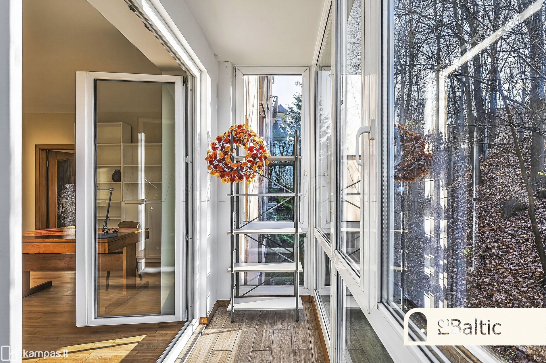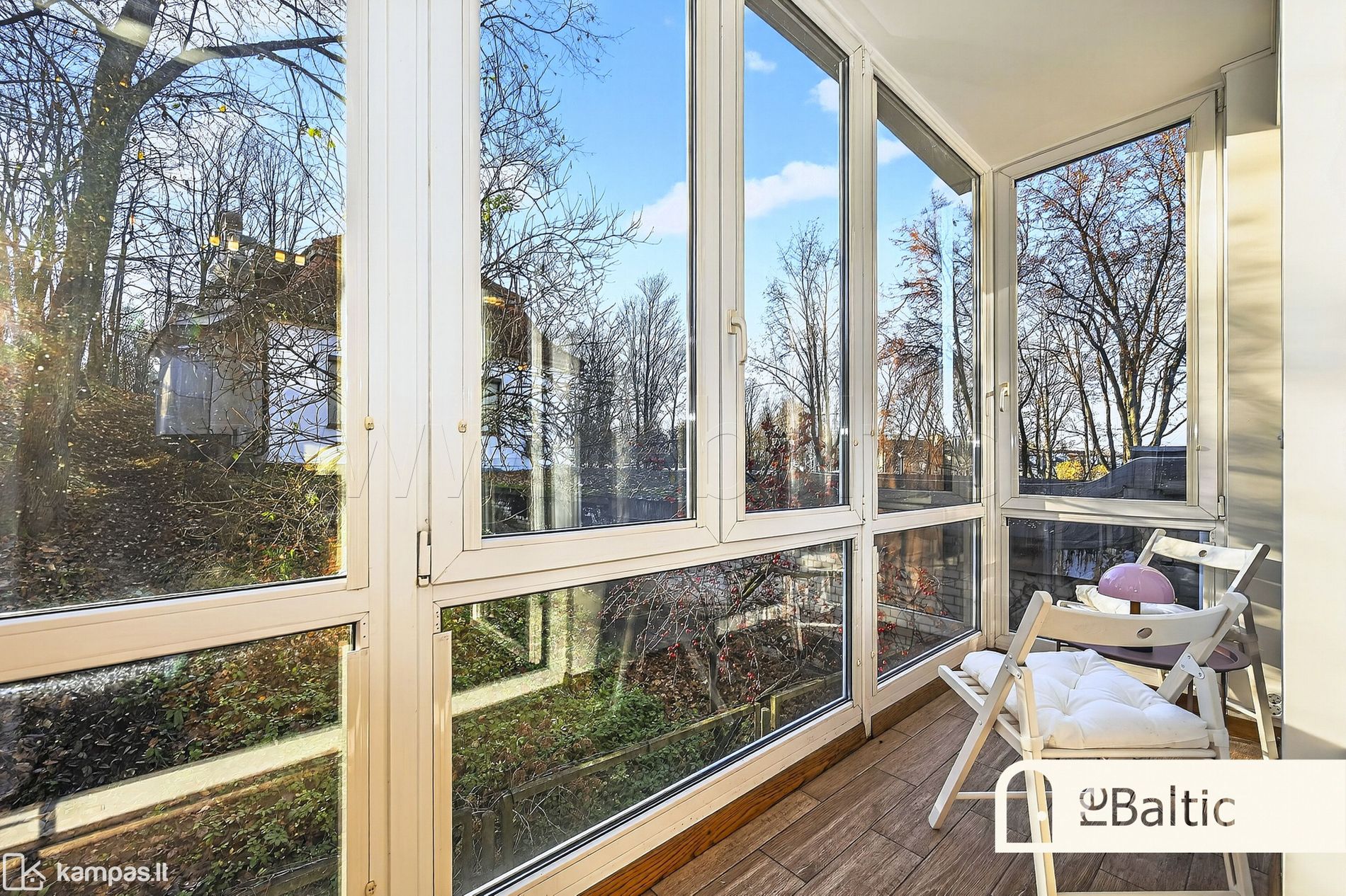 - Dideli langai ir įstiklintas balkonas, orientuoti į visiškai privačią, ilgamečių medžių medžių žalumos ir saulės spindulių lepinamą pietų pusę