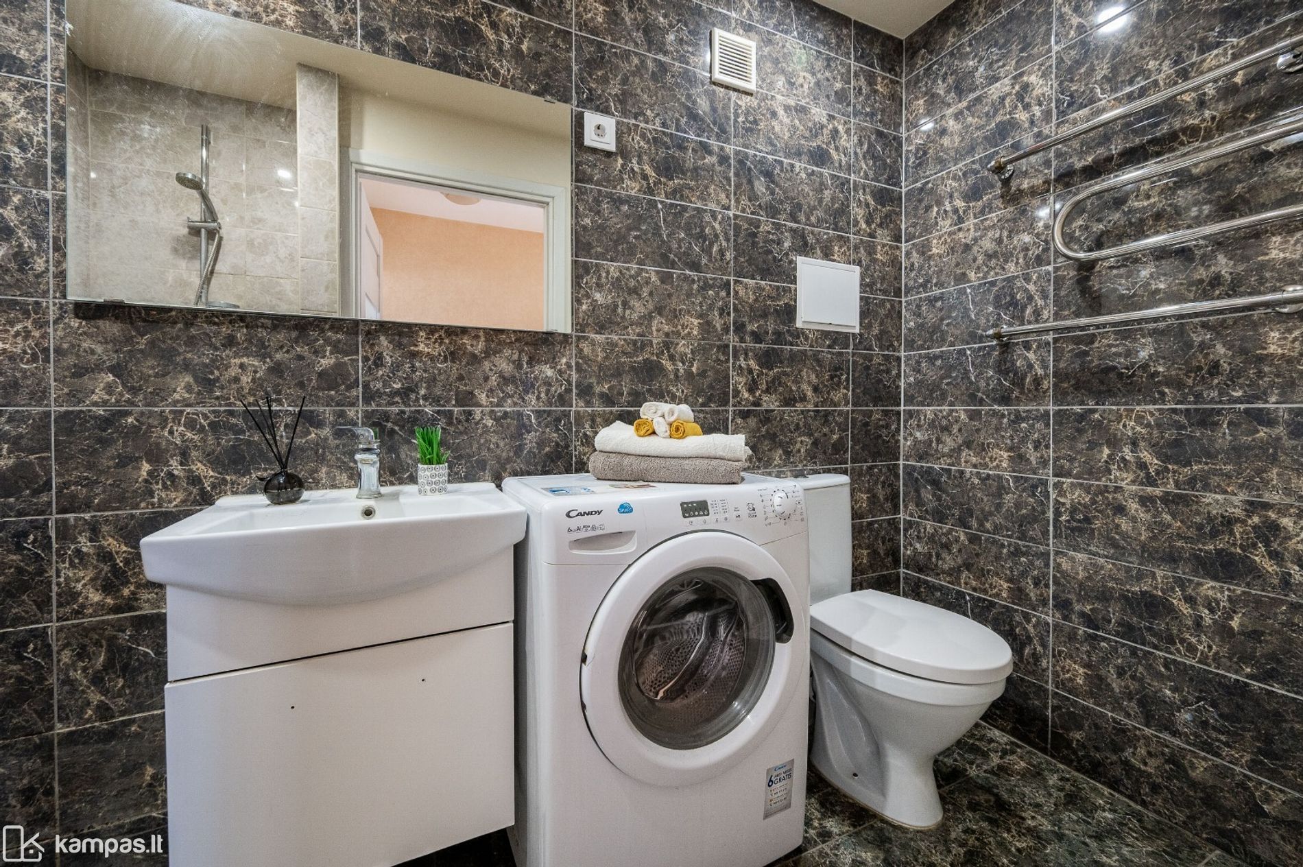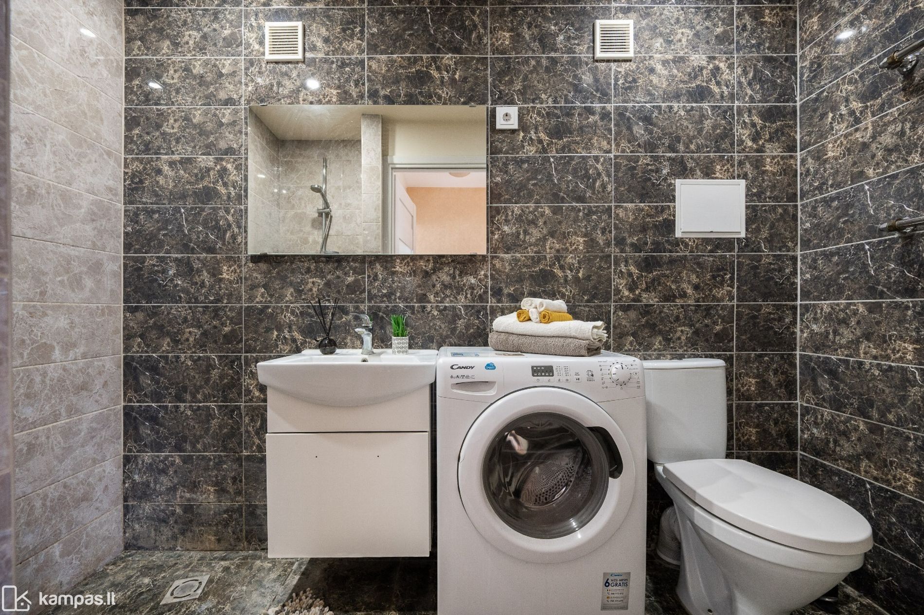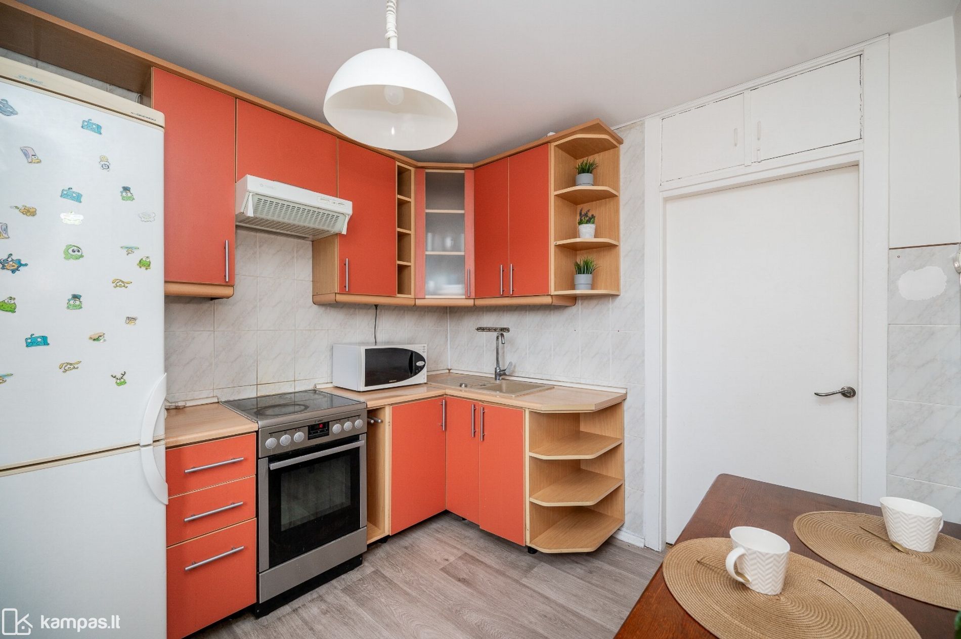 • Nuomojamas su baldais (matomais nuotraukose) ir buitine technika (elektrinė viryklė, orkaitė, šaldytuvas, skalbimo mašina, mikrobangų krosnelė)