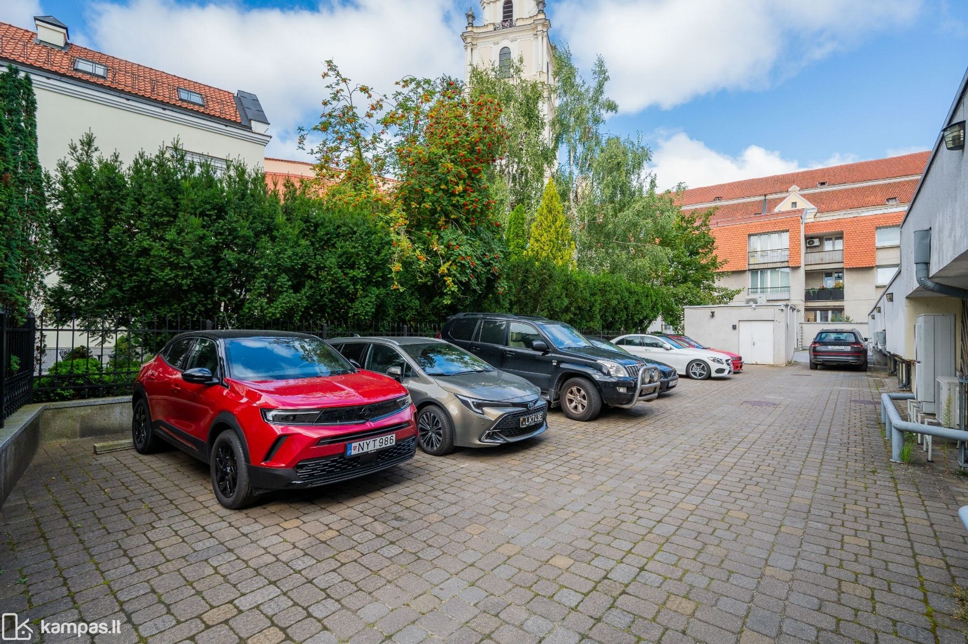 • Patogus parkavimas vidiniame kieme 1 vieta arba mėlynoji zona (galima išsipirkti gyventojo leidimą antrai mašinai, kurio kaina ~96 eur/metams)