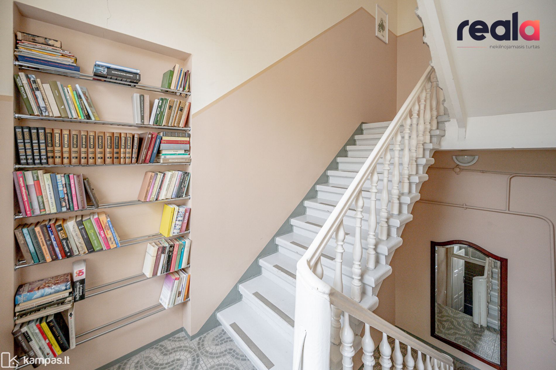 - Į butą patenkama per atskirą laiptinę, skirtą tik šiam butui. Butas randasi trečiame aukšte. Laiptinė tvarkinga, papuošta paveikslais ir knygomis. Tokio tvarkingumo ir privatumo laiptinė yra labai reta Senamiestyje;
