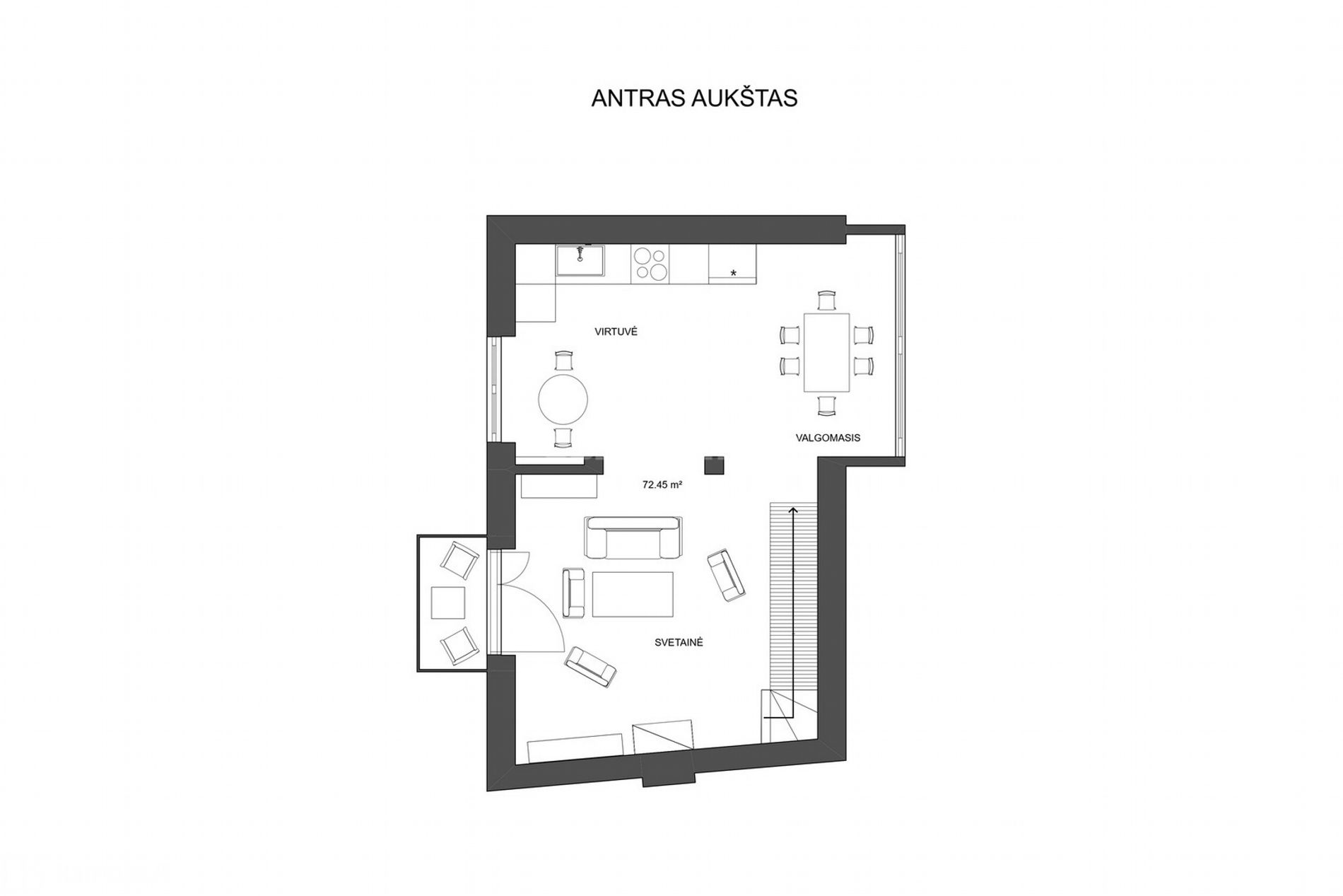• Erdvi svetainės zona, ideali bendram laisvalaikiui ir susibūrimams