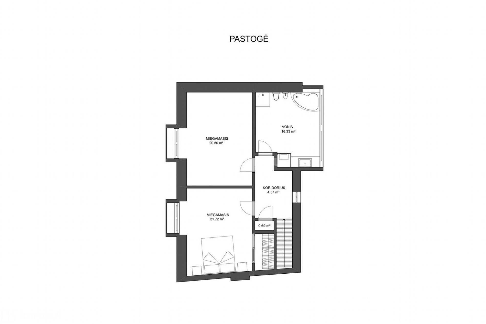 • Kambarių skaičius – 4, iš jų 3 miegamieji