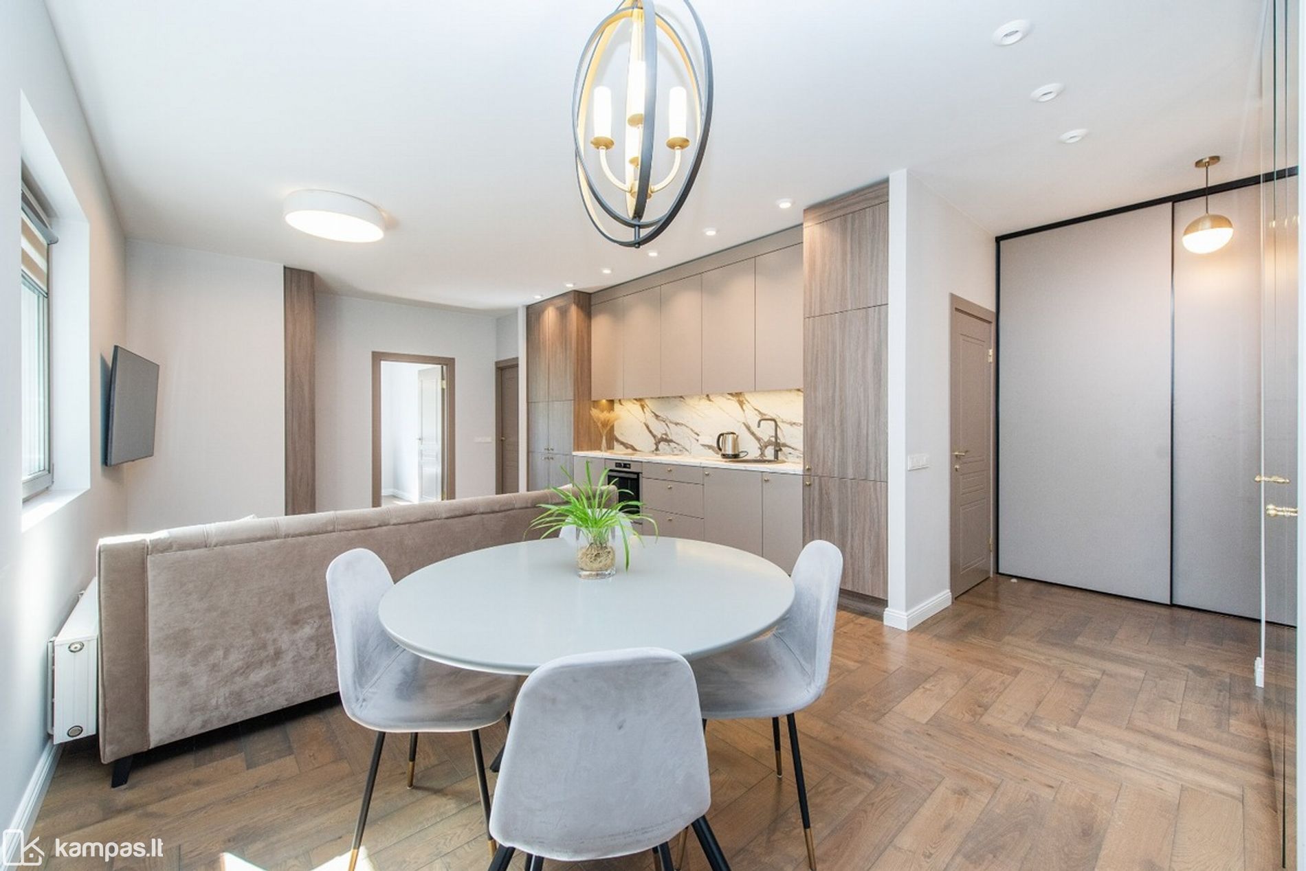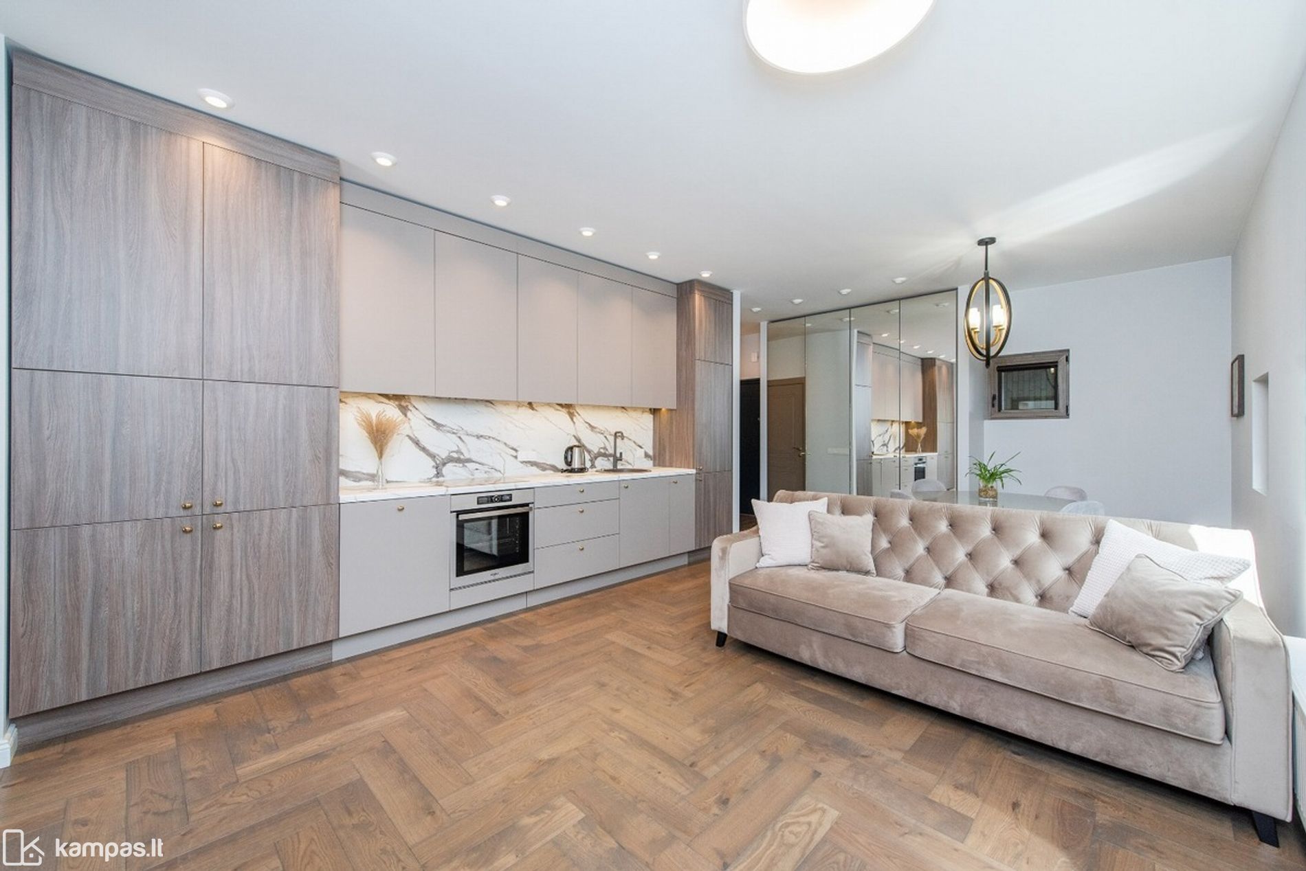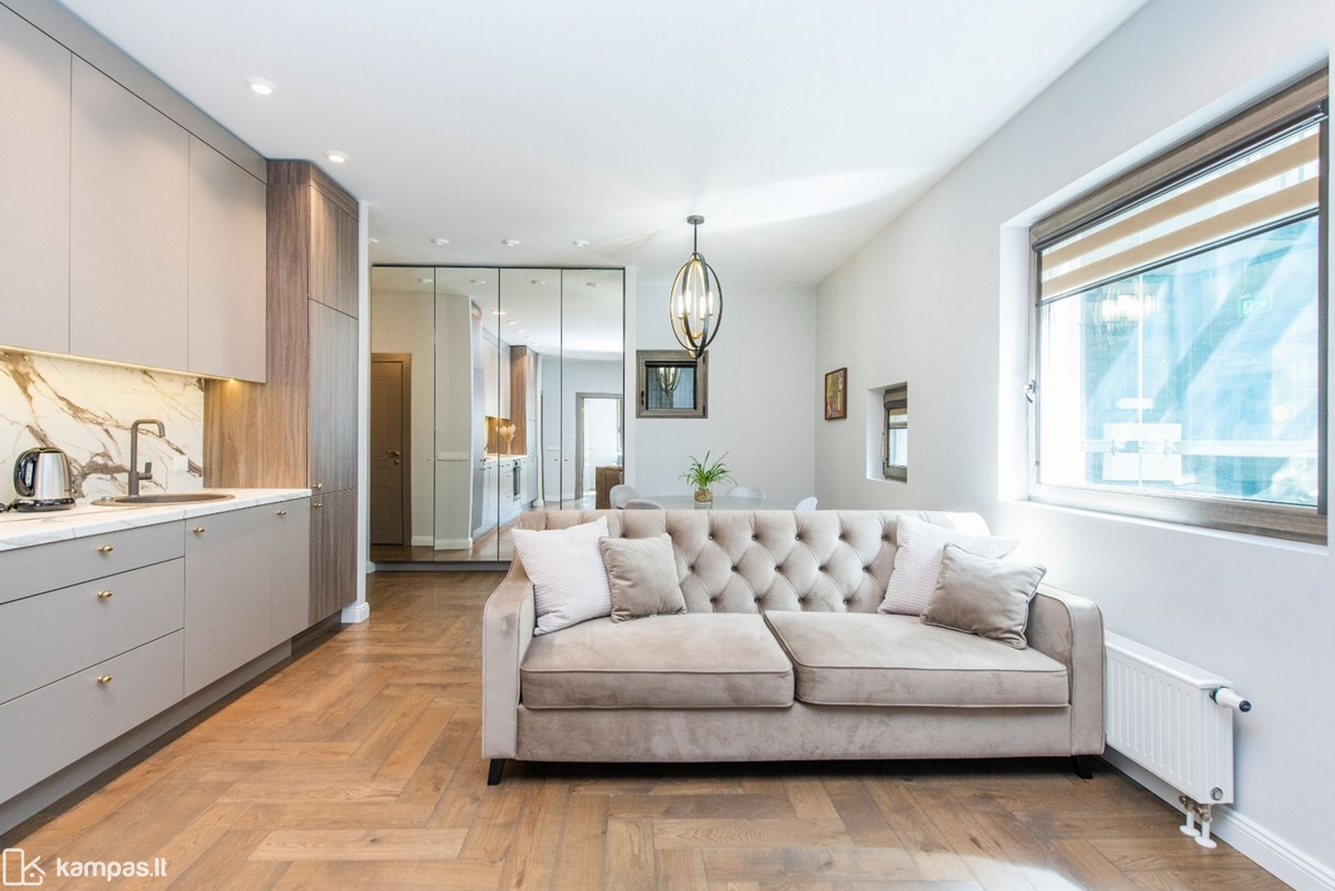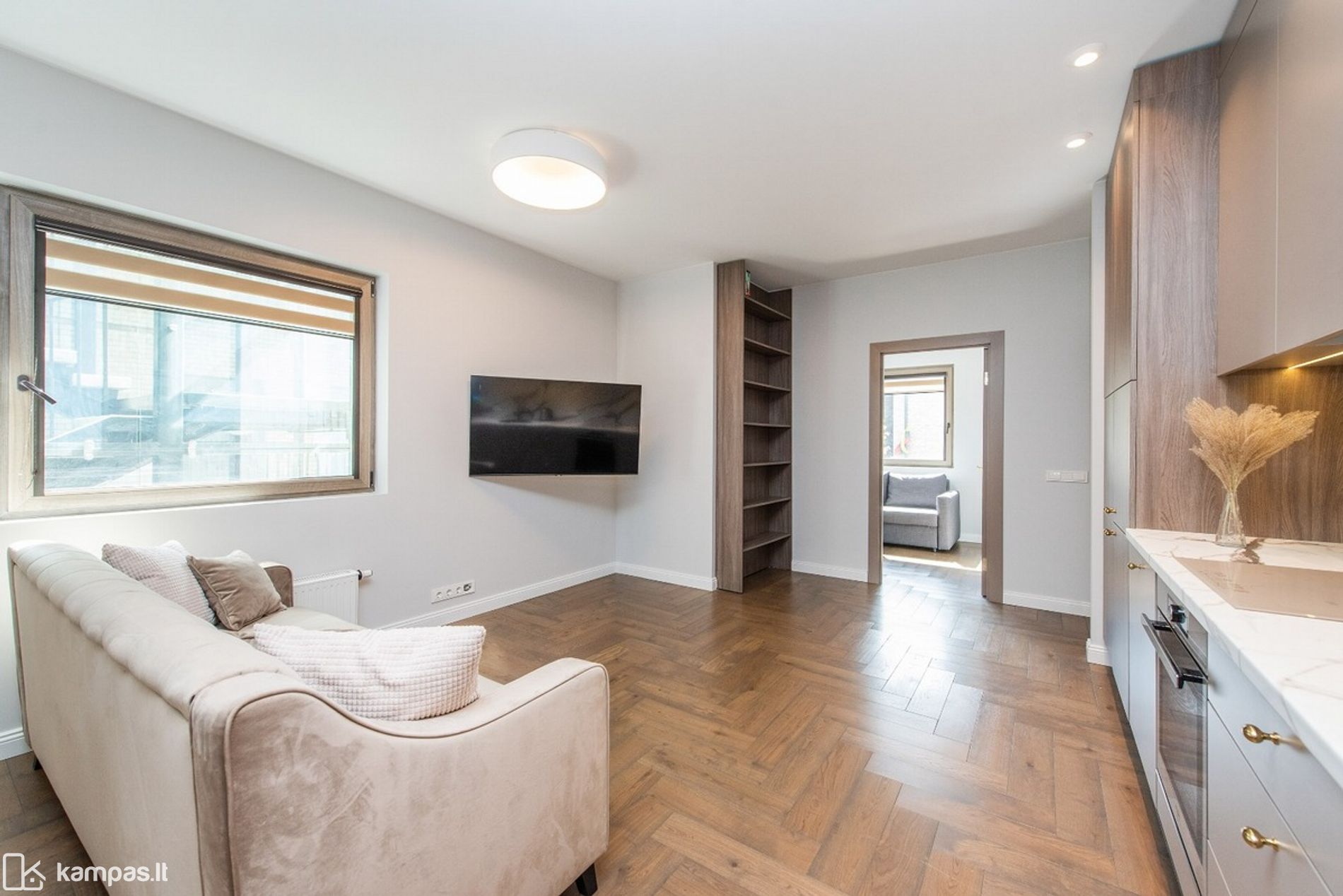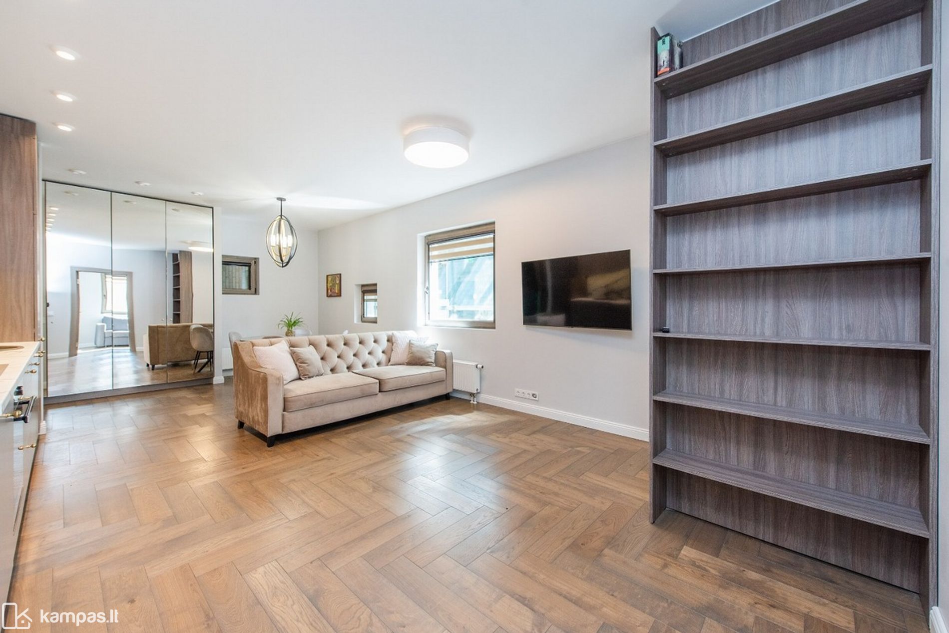 Kambariai: 3 (svetainė su virtuve, miegamasis, vaiko arba darbo kambarys;