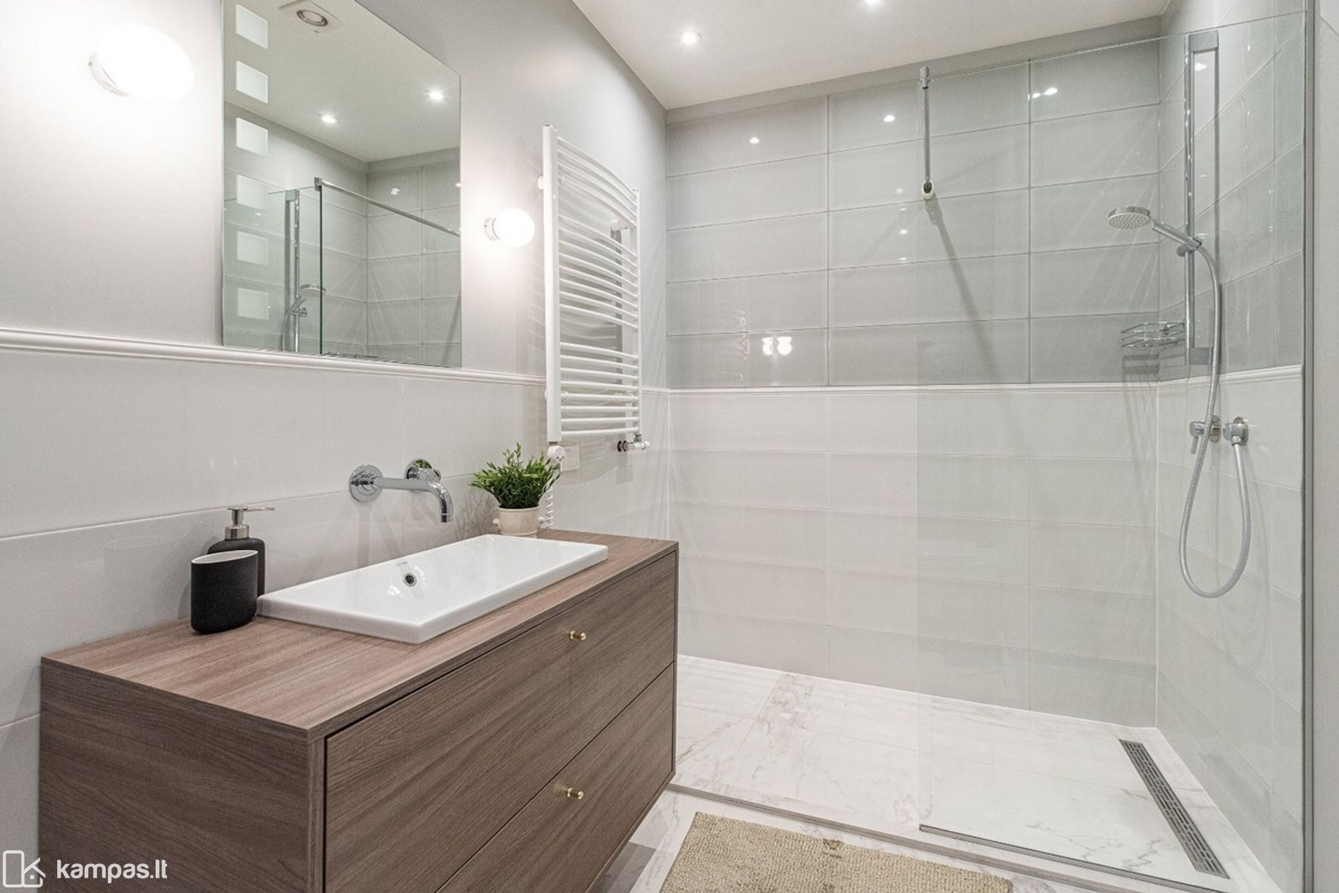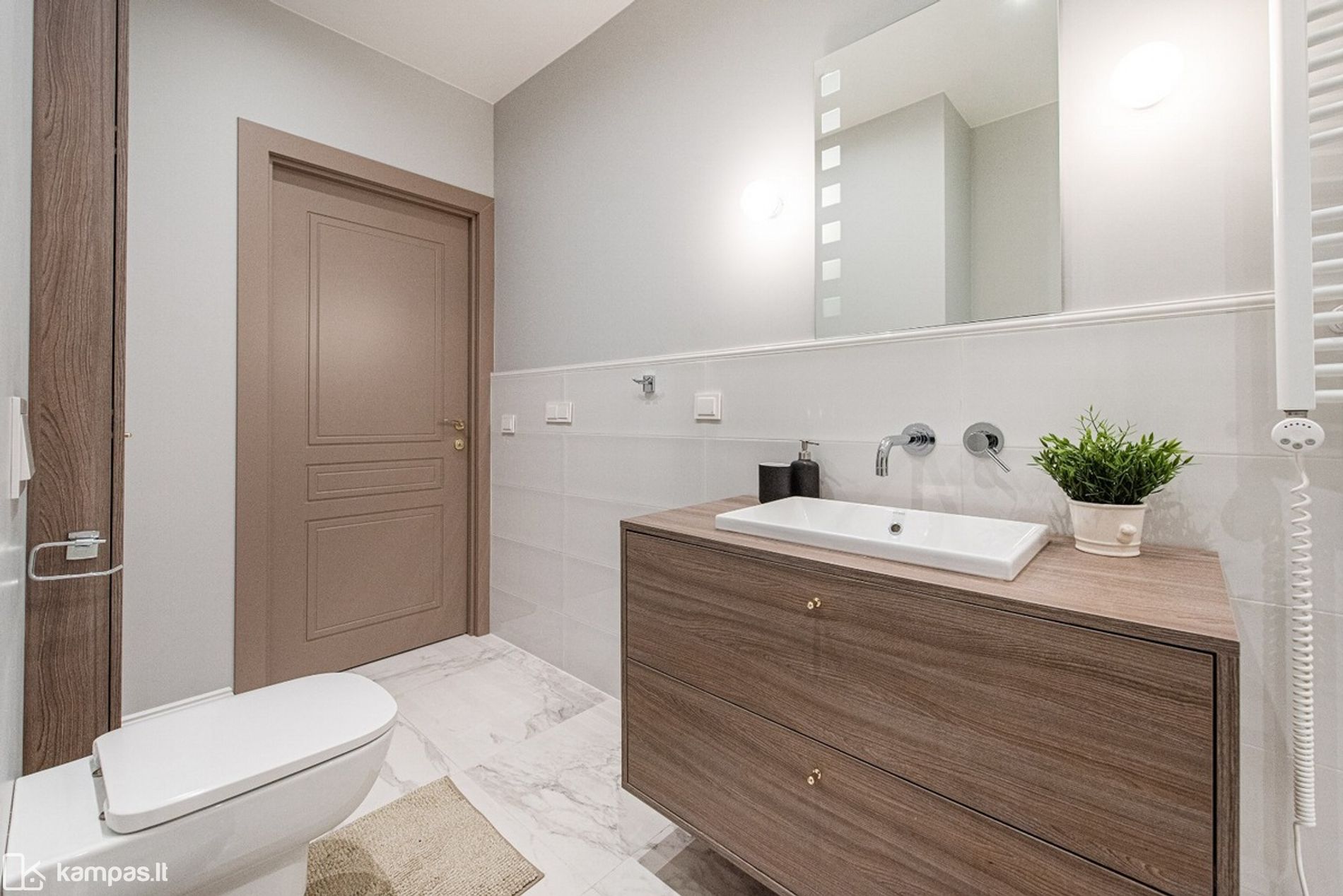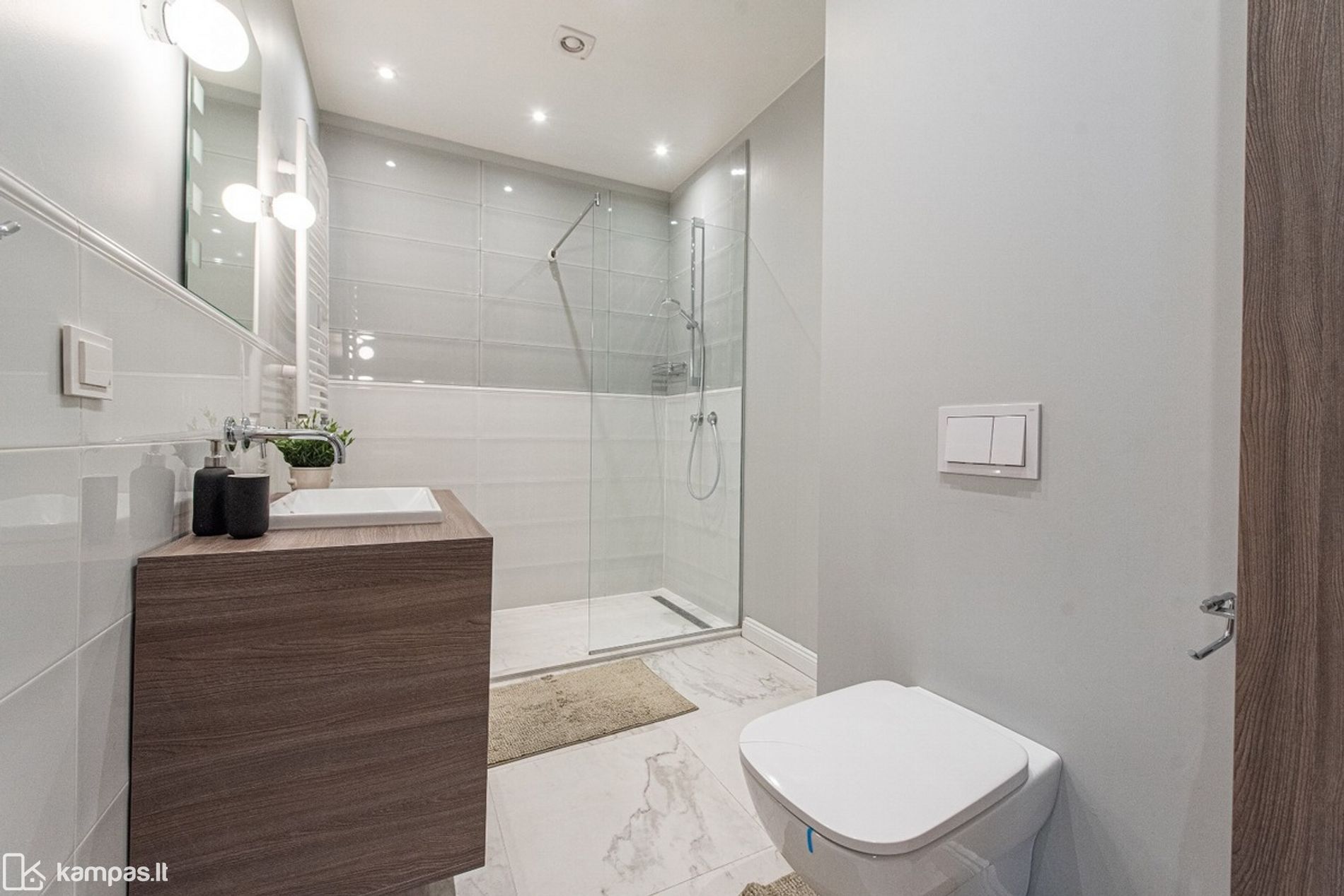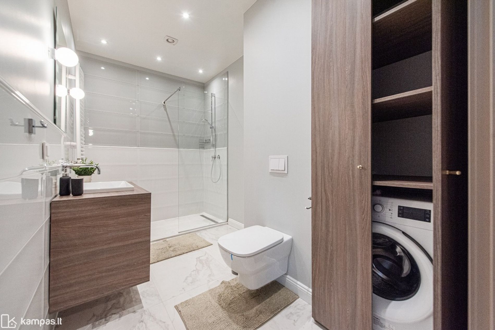 • Vonios kambarys: tualetas ir dušas kartu, sumontuota kokybiška santechnika, skalbimo mašina