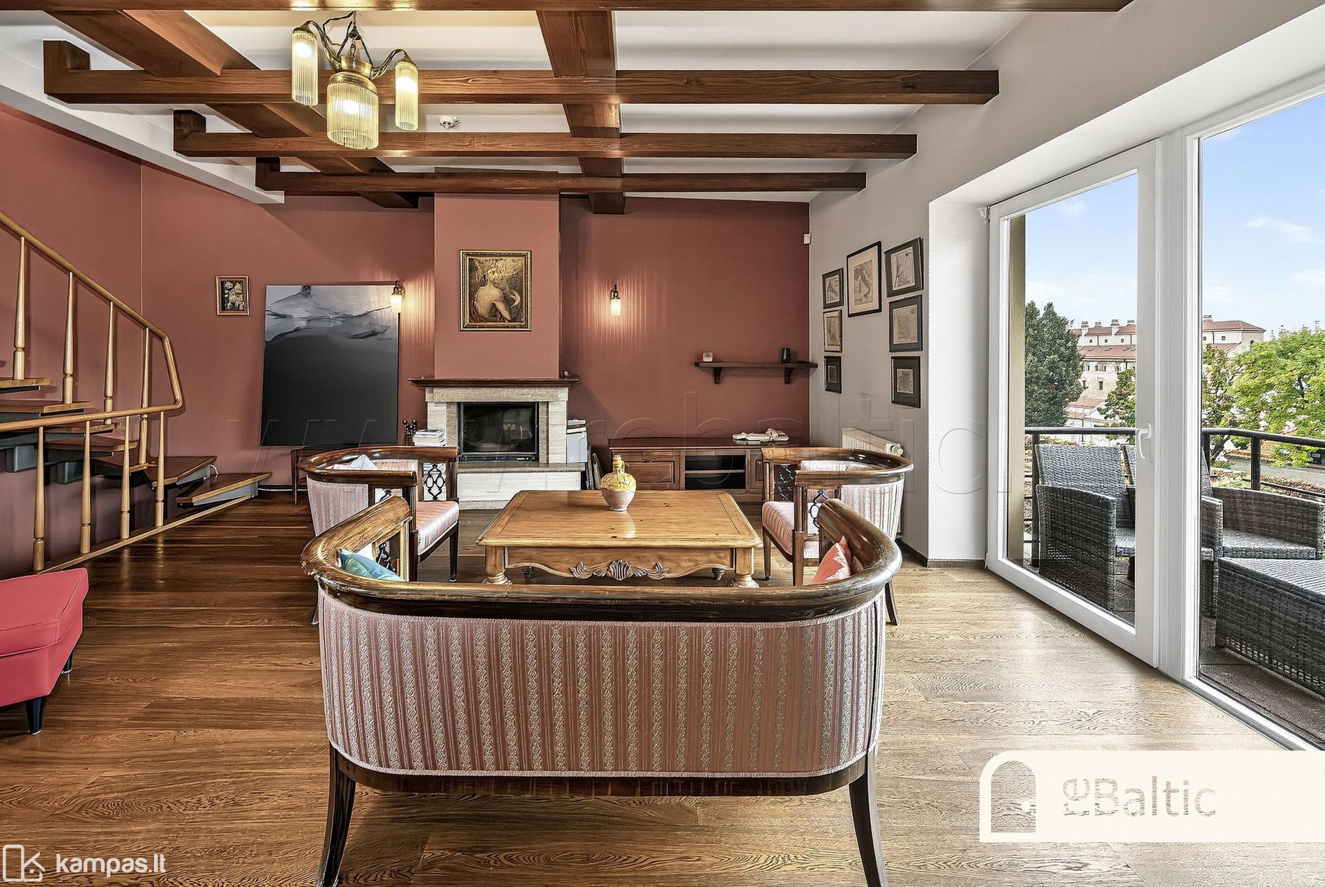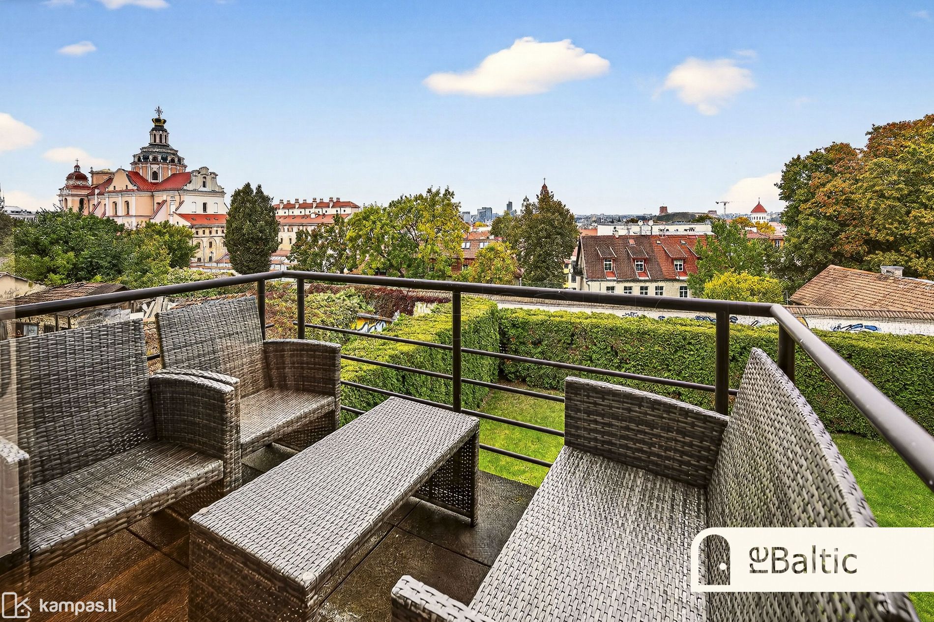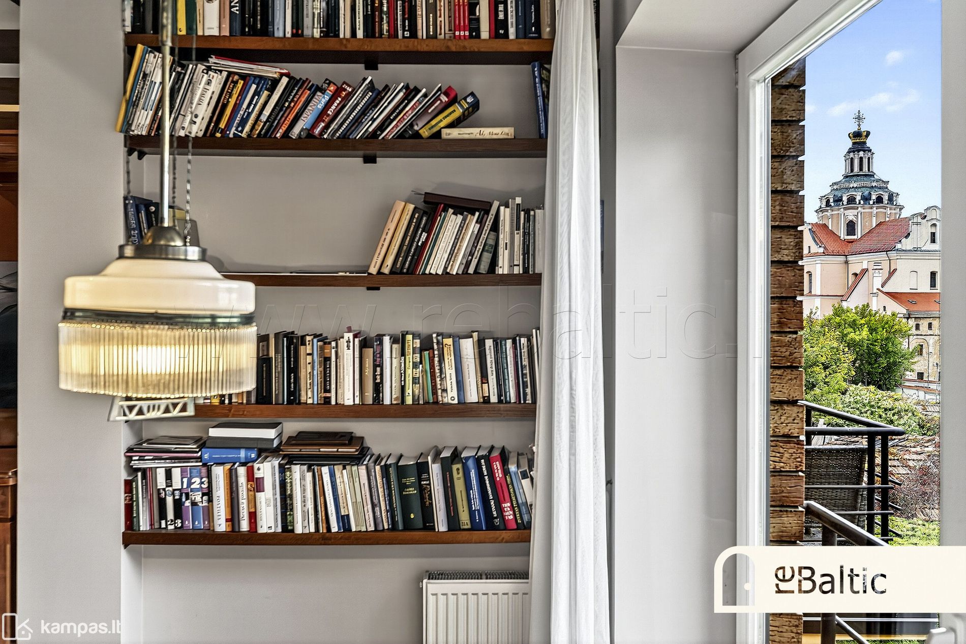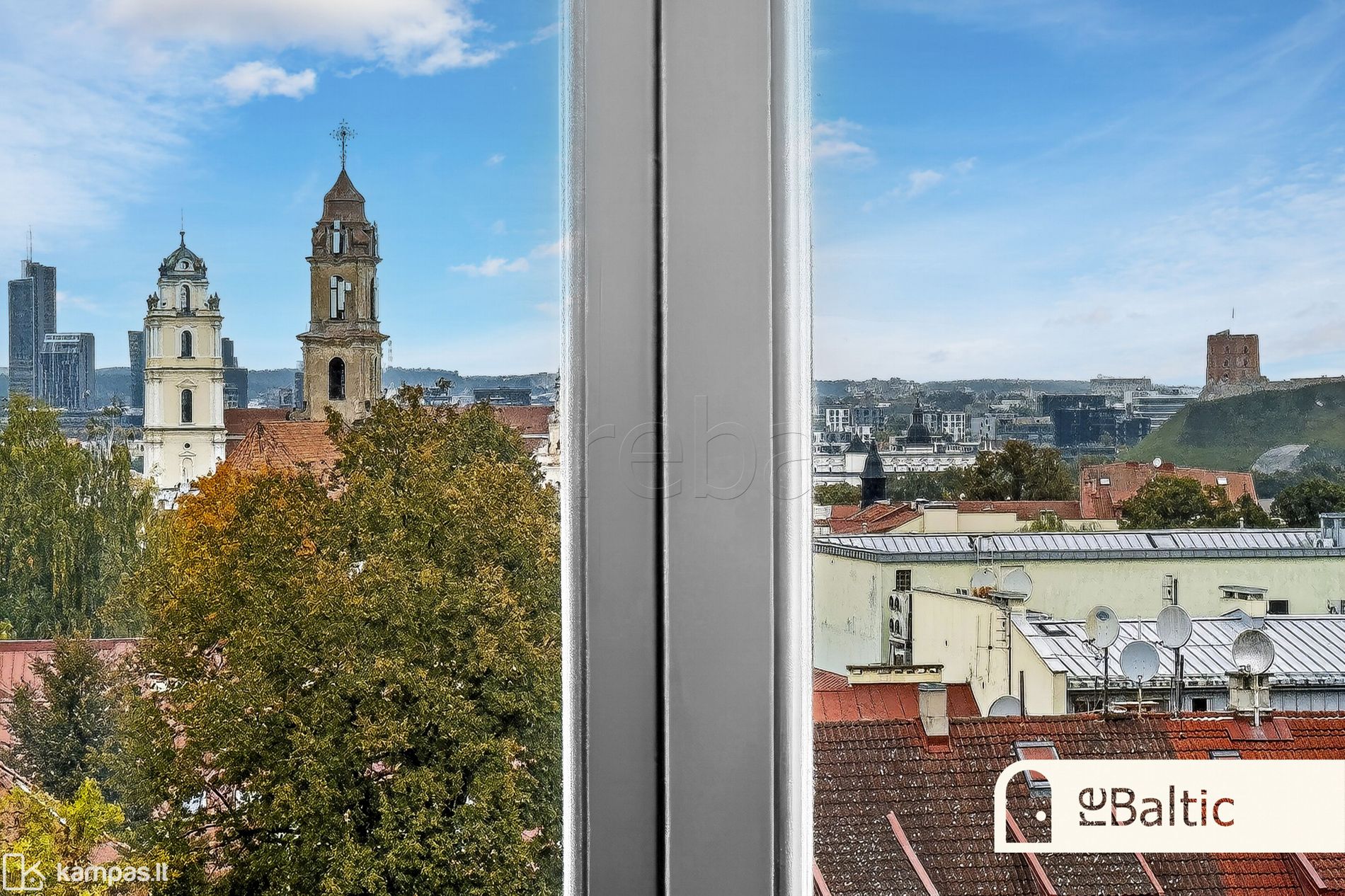 - Pagrindiniame, antrame aukšte, erdvi svetainė su nuostabiais Senamiesčio vaizdais pro langą, virtuvė, išėjimas į balkoną