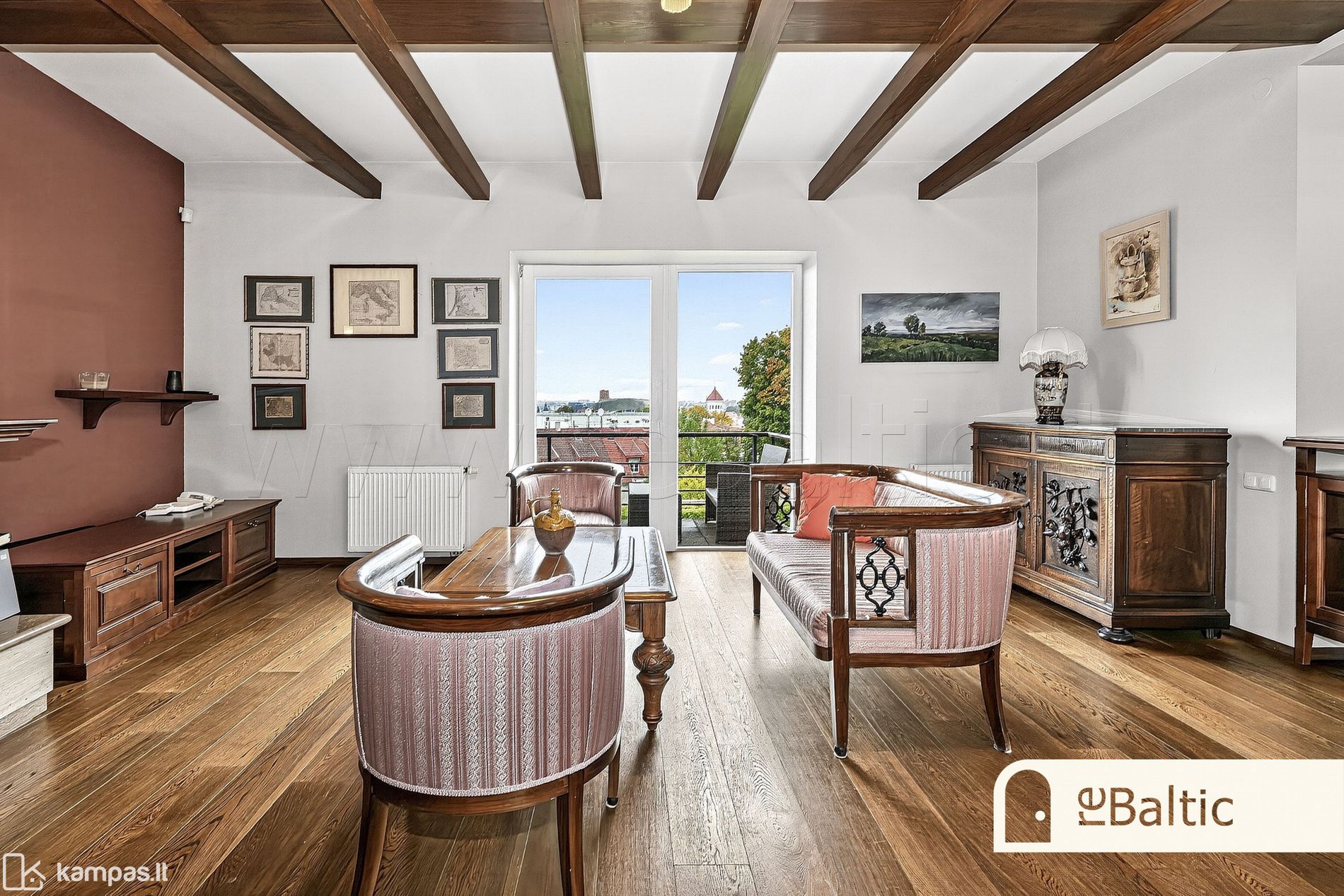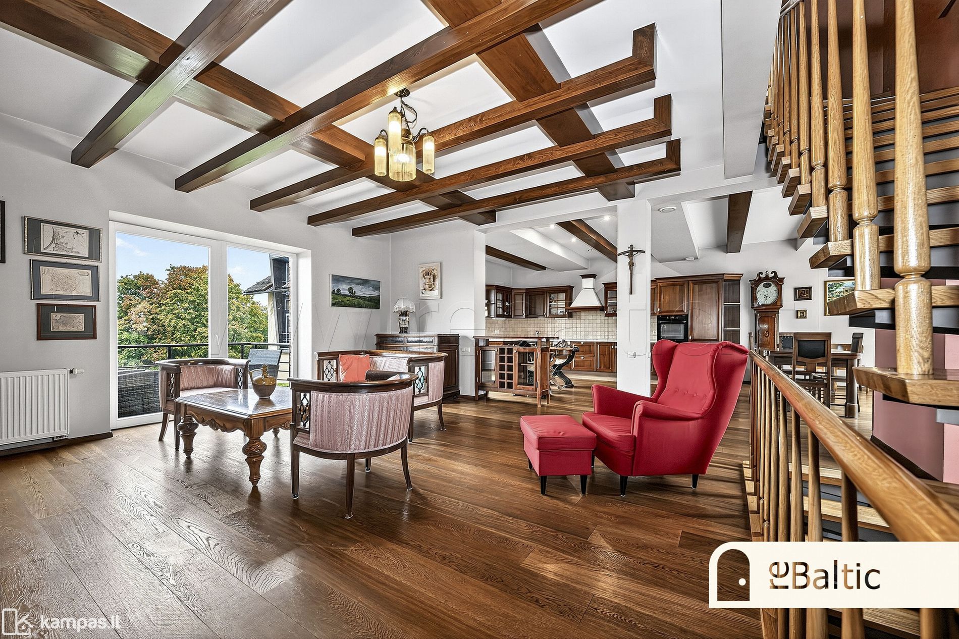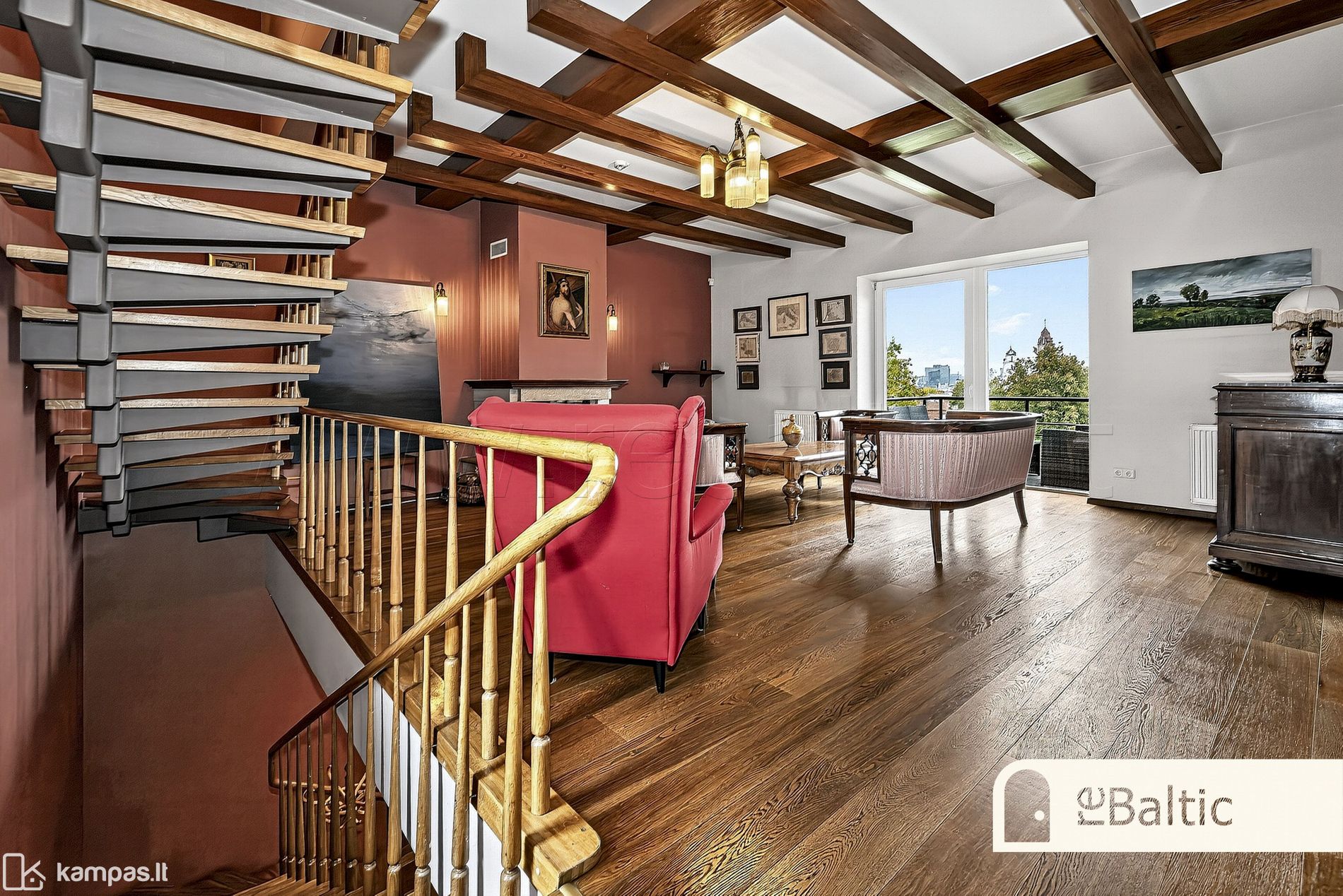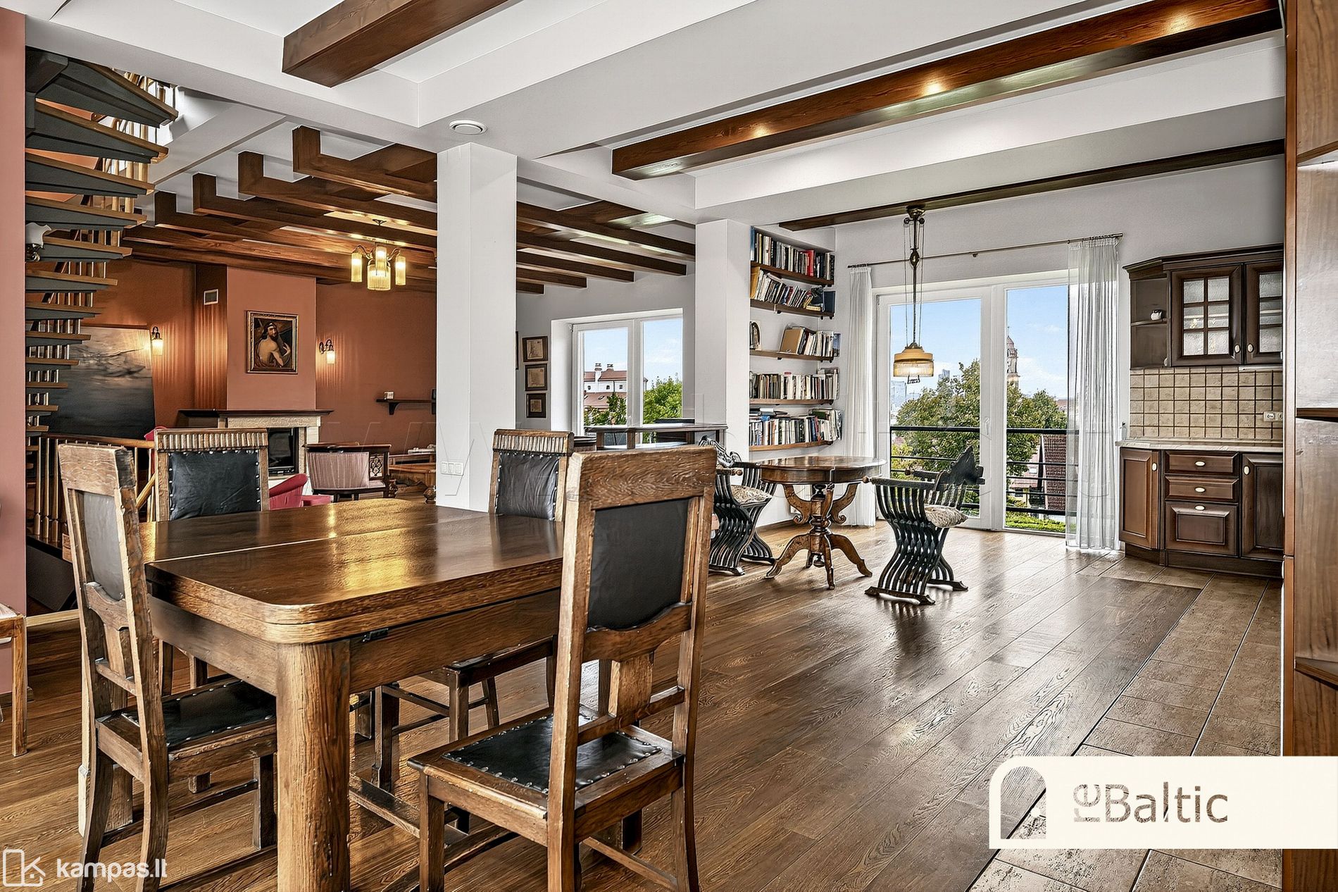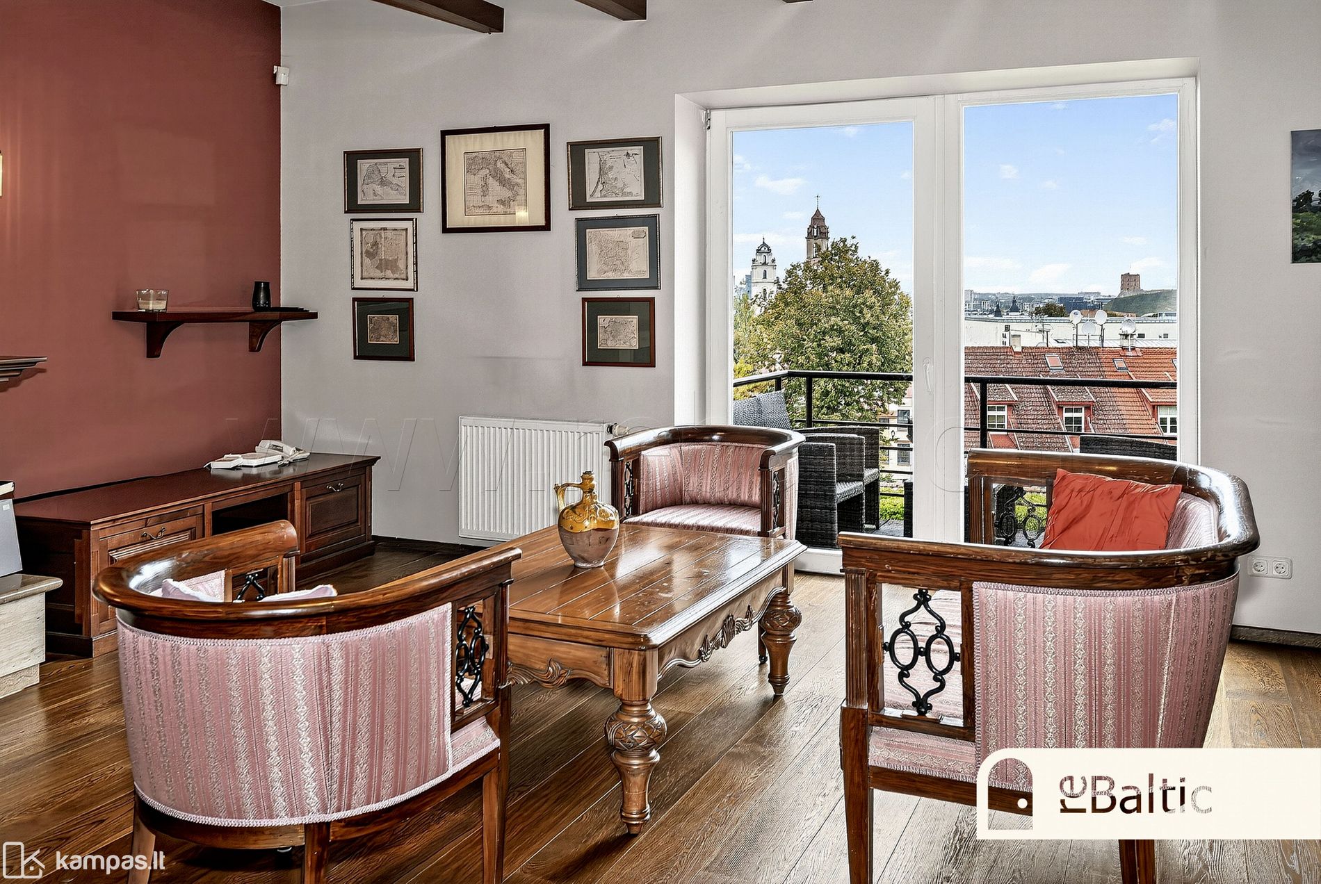 - Pagrindiniame, antrame aukšte, erdvi svetainė su nuostabiais Senamiesčio vaizdais pro langą, virtuvė, išėjimas į balkoną