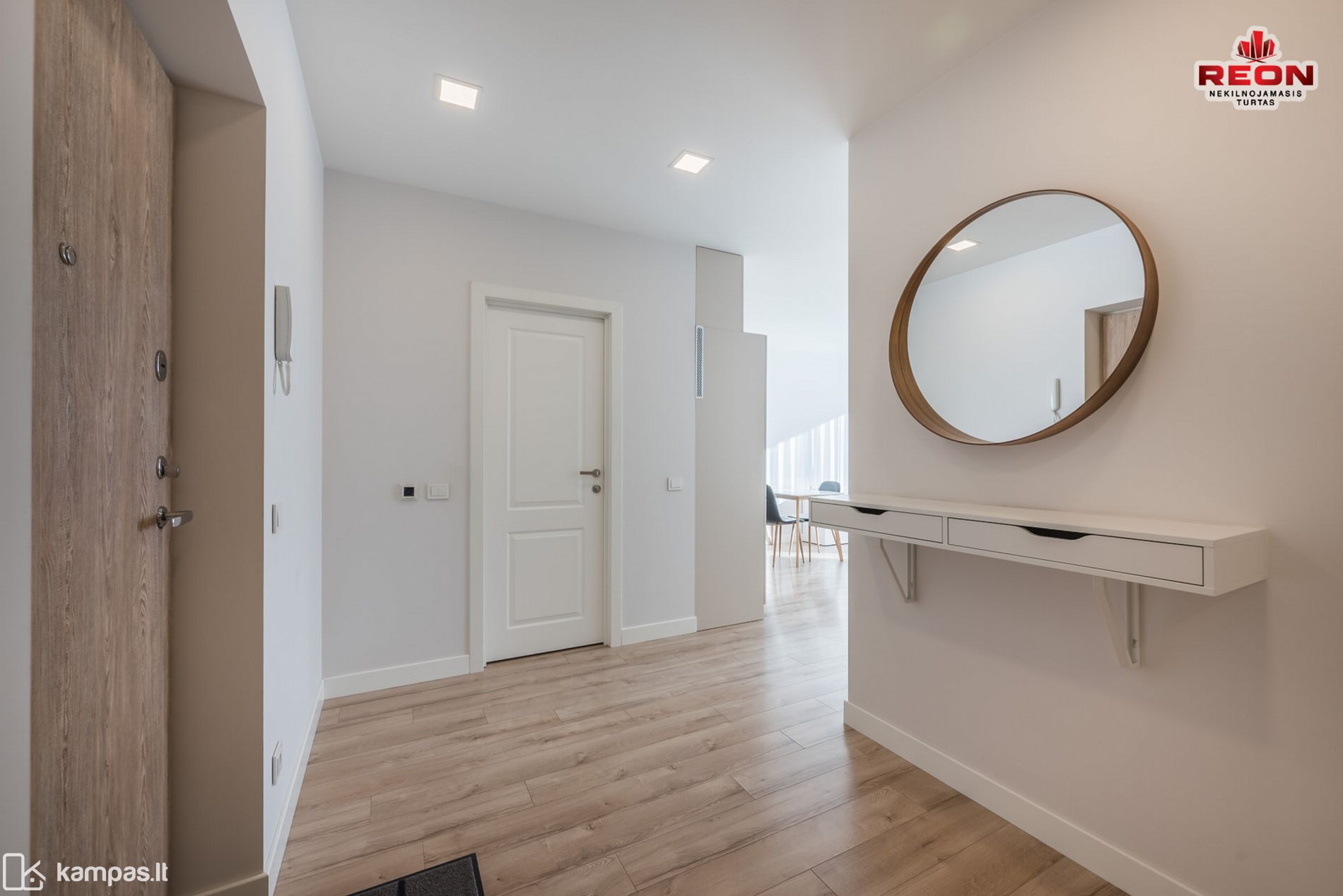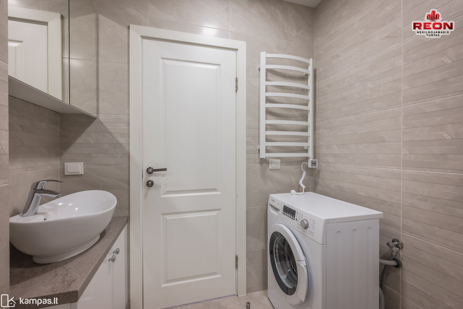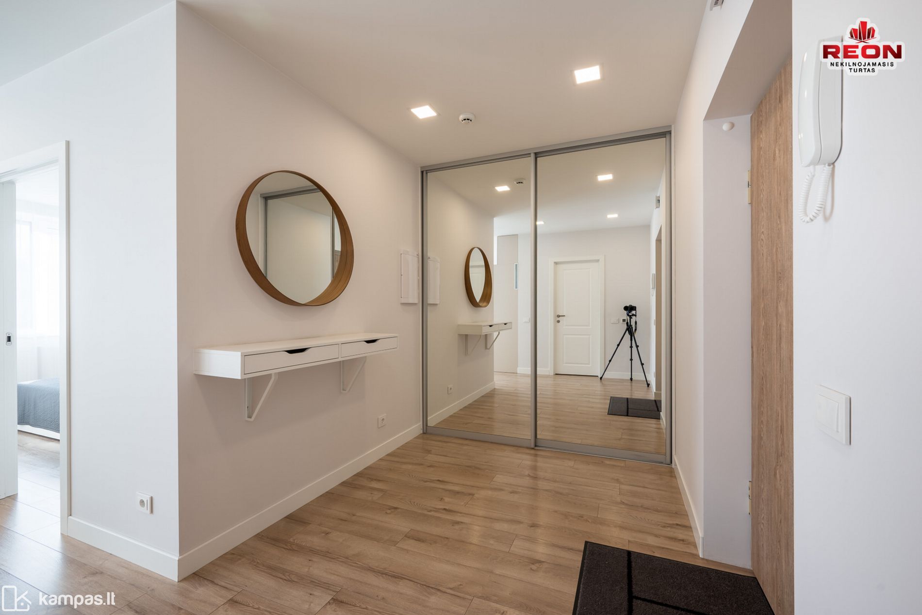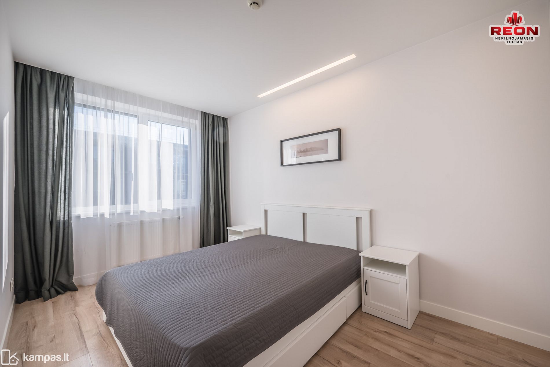 Nuomojamas šviesus, jaukiai, kokybiškai įrengtas 2 kambarių butas. Bute yra visi baldai ir buitinė technika (taip pat ir indaplovė). Svetainėje ištiesiama sofa-lova, miegamajame dvigulė lova su erdvia sienine spinta.