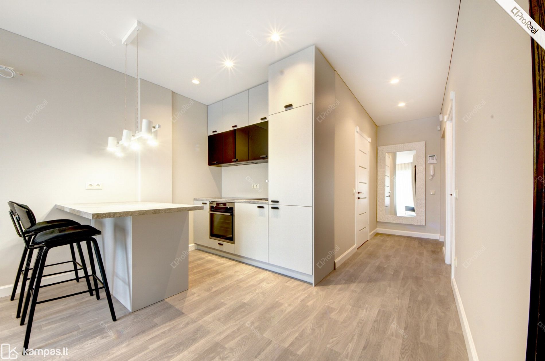 Mūrinis, 2022, m., 1 aukštas iš 4, 45 kv. m., svetainė-virtuvė kartu, dušas ir tualetas kartu, tamsusis - drabužinė kambarys, balkonas.