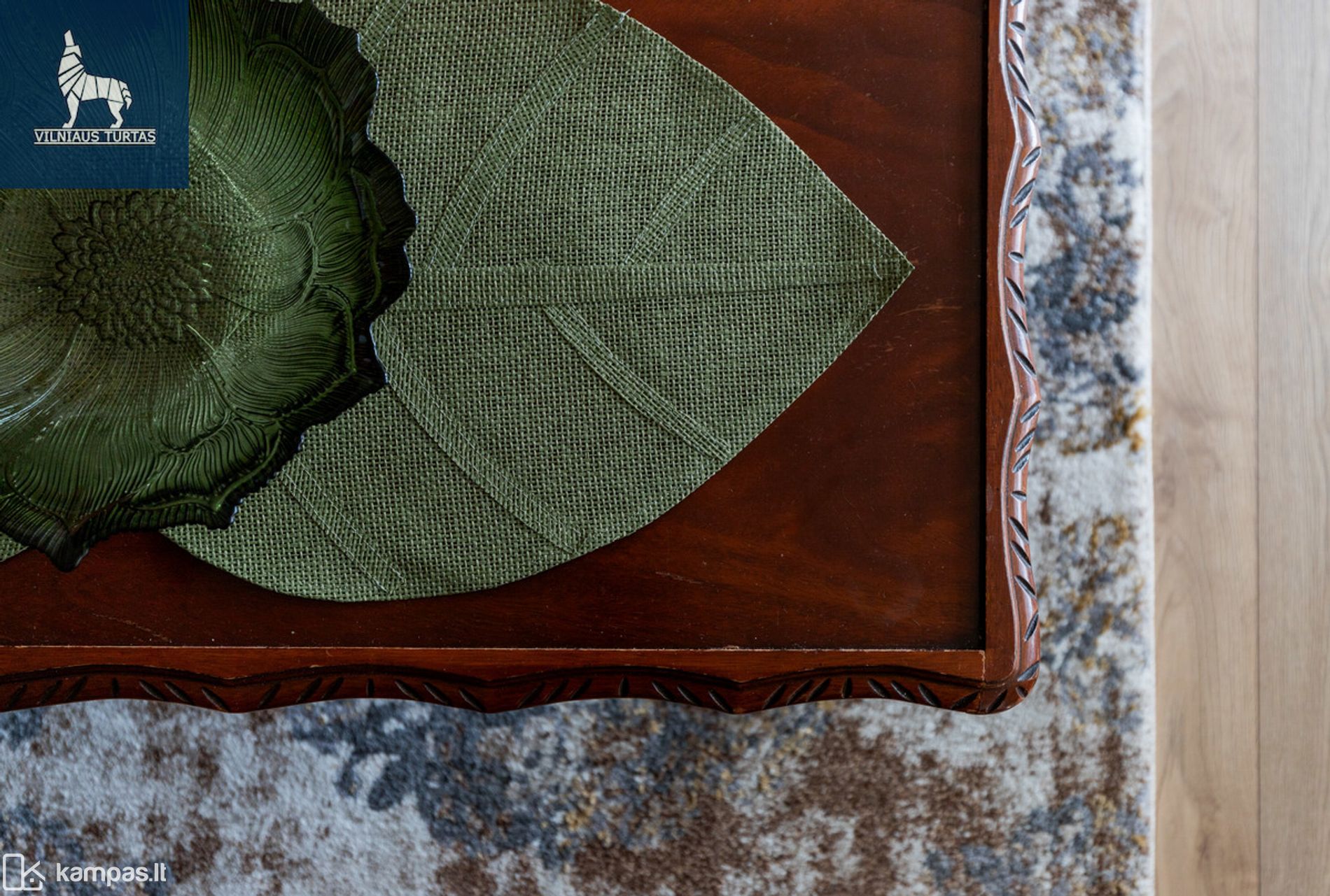 — Svetainėje: minkštas kampas su miegama vieta, elegantiška sekcija, kavos staliukas ir stalas;
