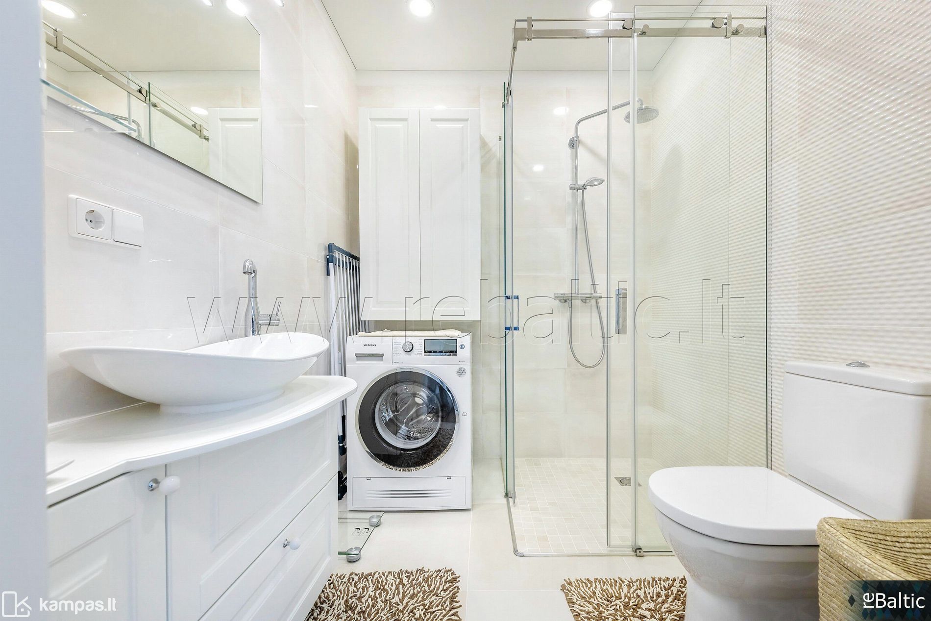 • Vonios kambaryje sumontuota vokiška Hansgrohe bei Villeroy & Boch santechnika, dušo kabina pagaminta pagal atskirą užsakymą, Siemens skalbimo / džiovinimo mašina (du viename).