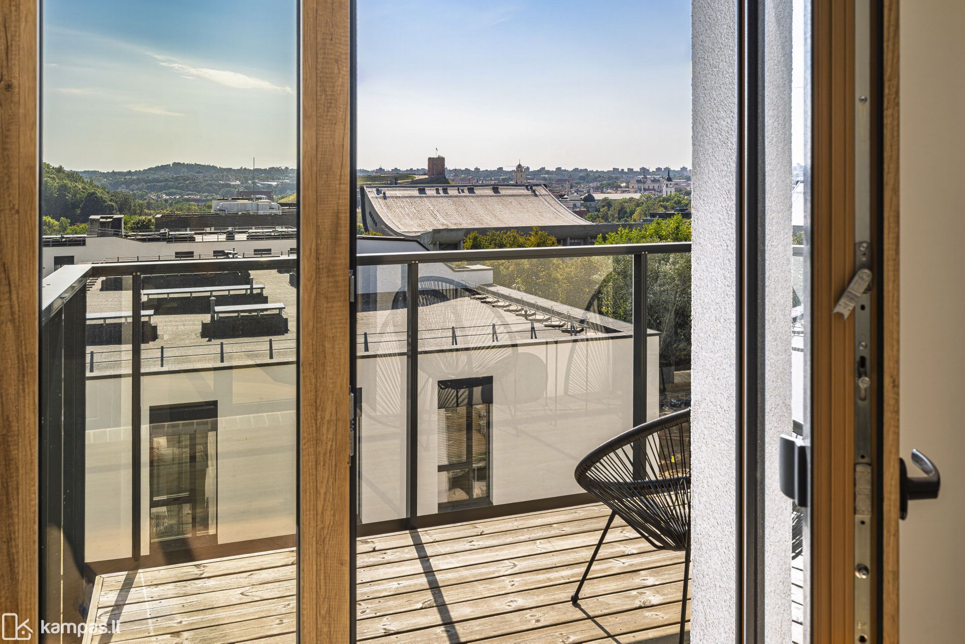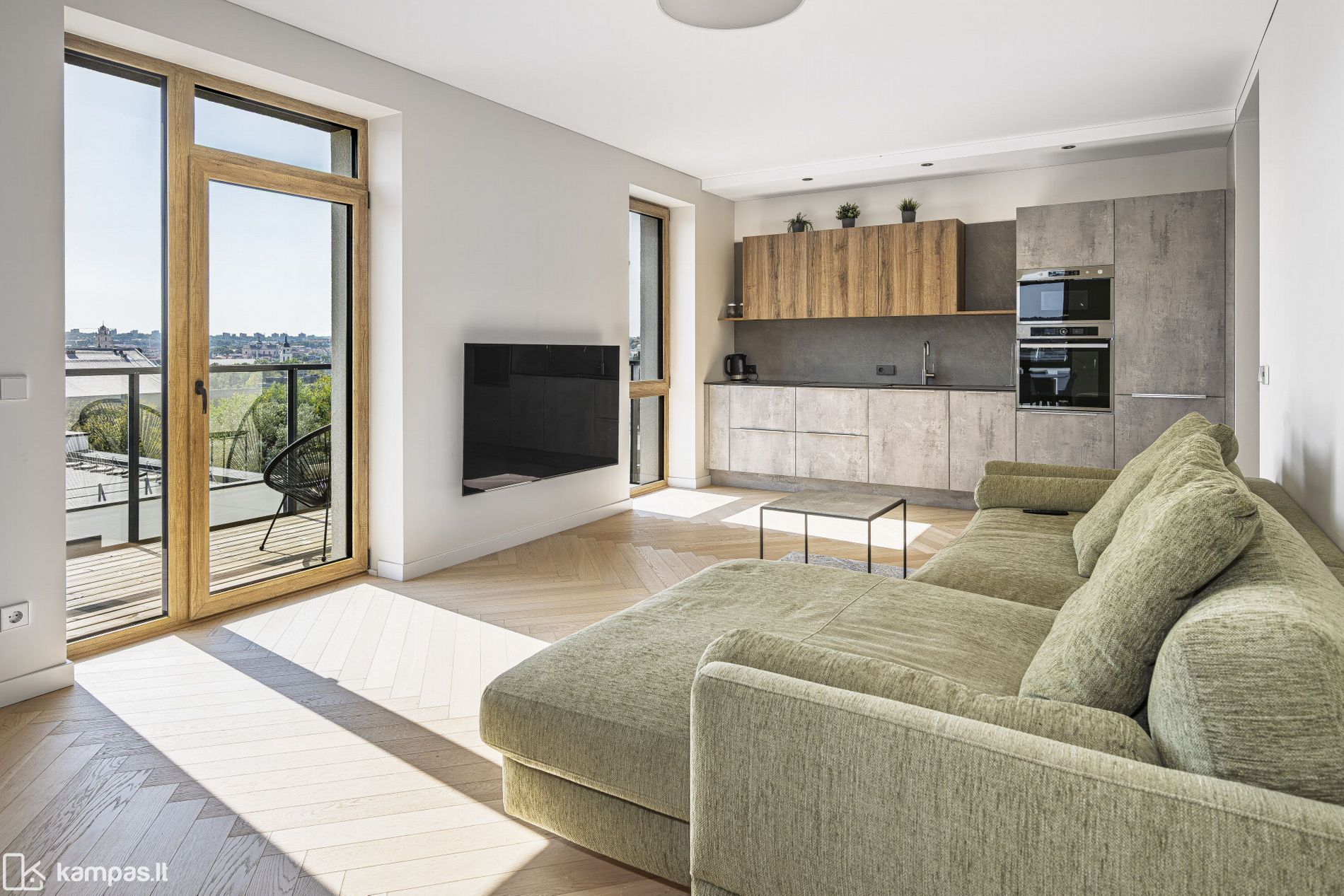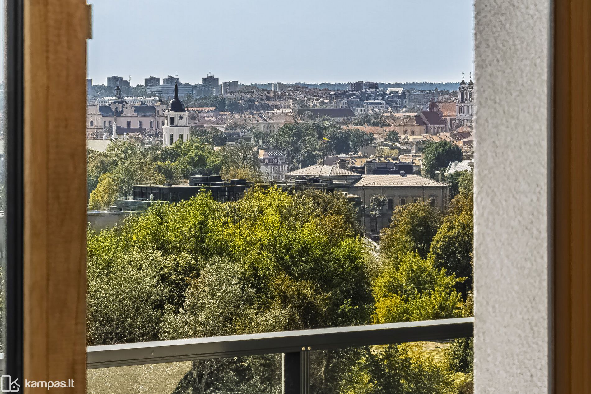 - Unique panoramic views of Vilnius Old Town, Gediminas Castle, church towers and the greenery of Kalnai Park, which you can enjoy year-round through large windows and from the spacious 10 m² balcony