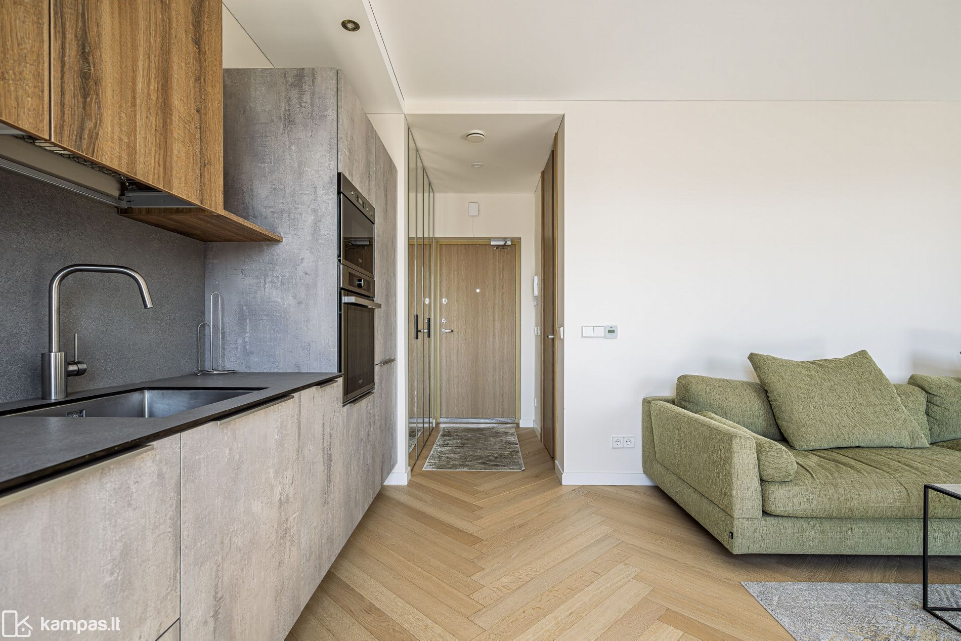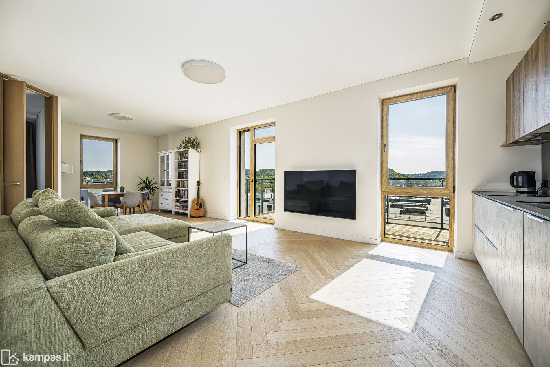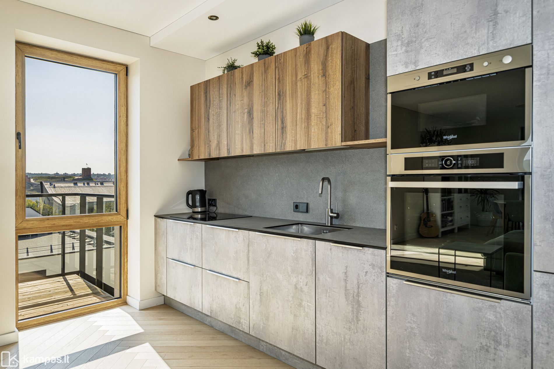 - Unique panoramic views of Vilnius Old Town, Gediminas Castle, church towers and the greenery of Kalnai Park, which you can enjoy year-round through large windows and from the spacious 10 m² balcony