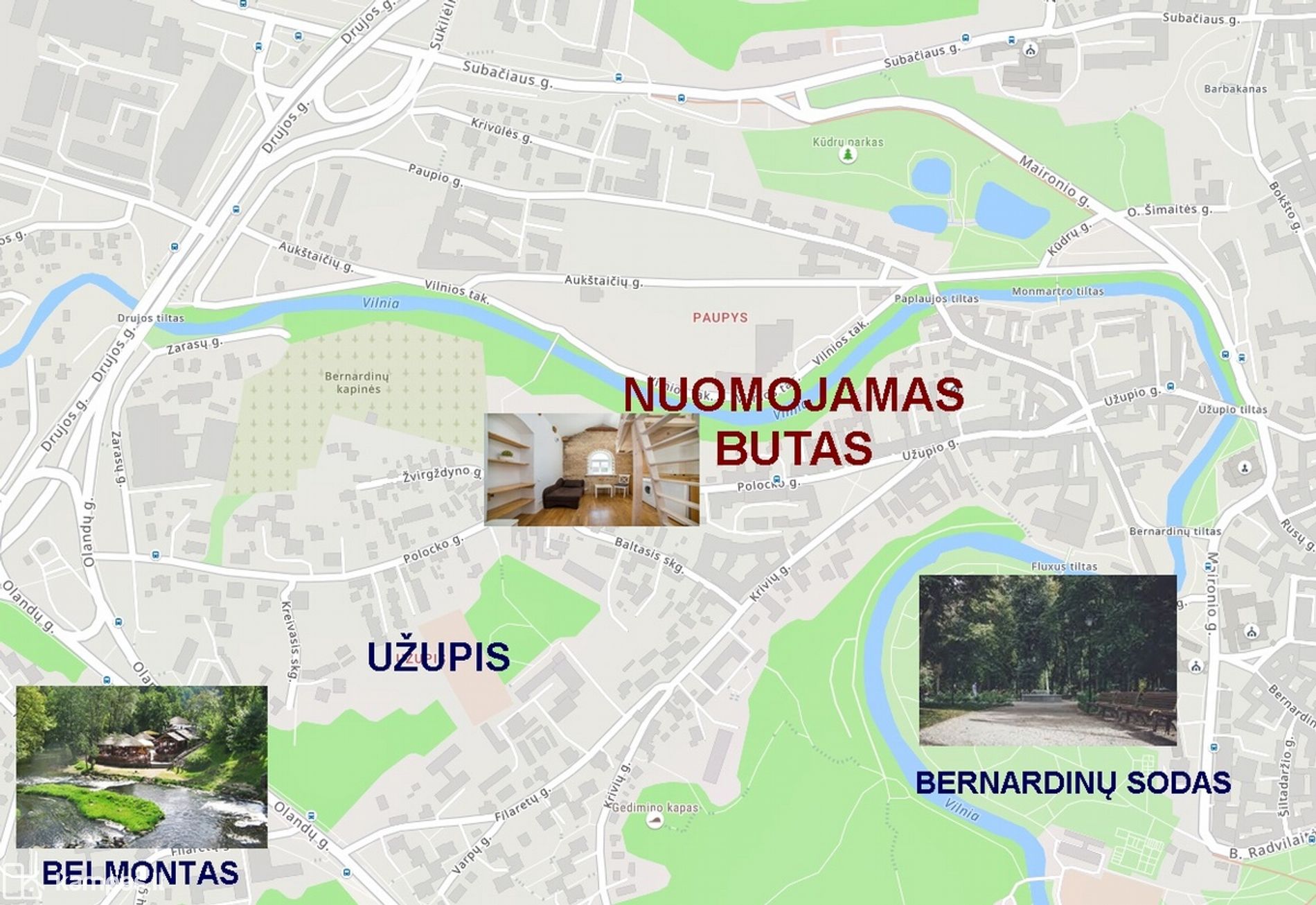 Užupyje išnuomojamas butas-studija, pačioje miesto širdyje Polocko g. 11, tik 5 min nuo Užupio Angelo skulptūros.