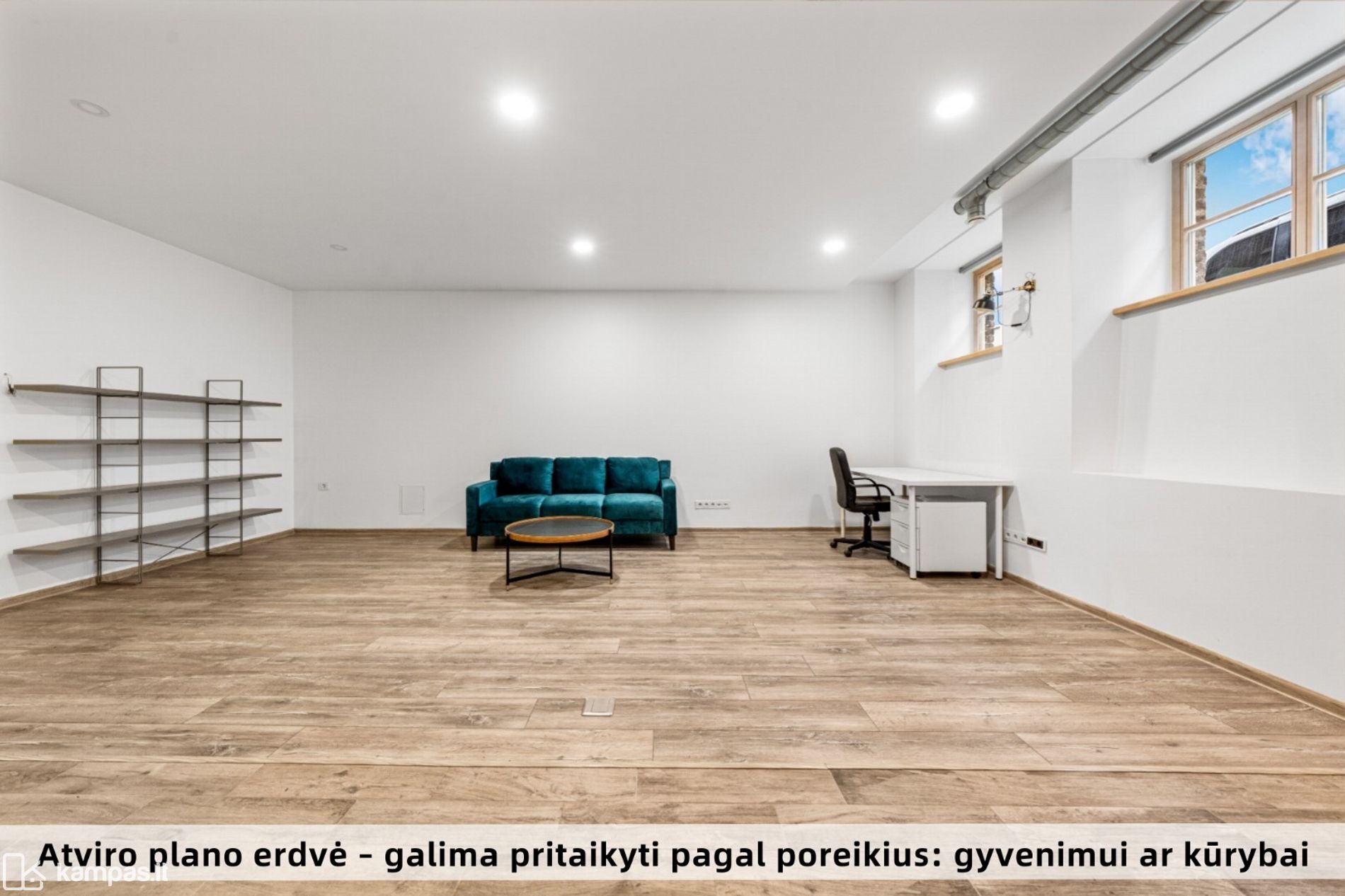 Butas pasižymi atvira, plačia erdve, todėl puikiai tinka tiek gyvenimui, tiek įvairiai veiklai – kūrybinei, biurinei ar net smulkiai komercijai.