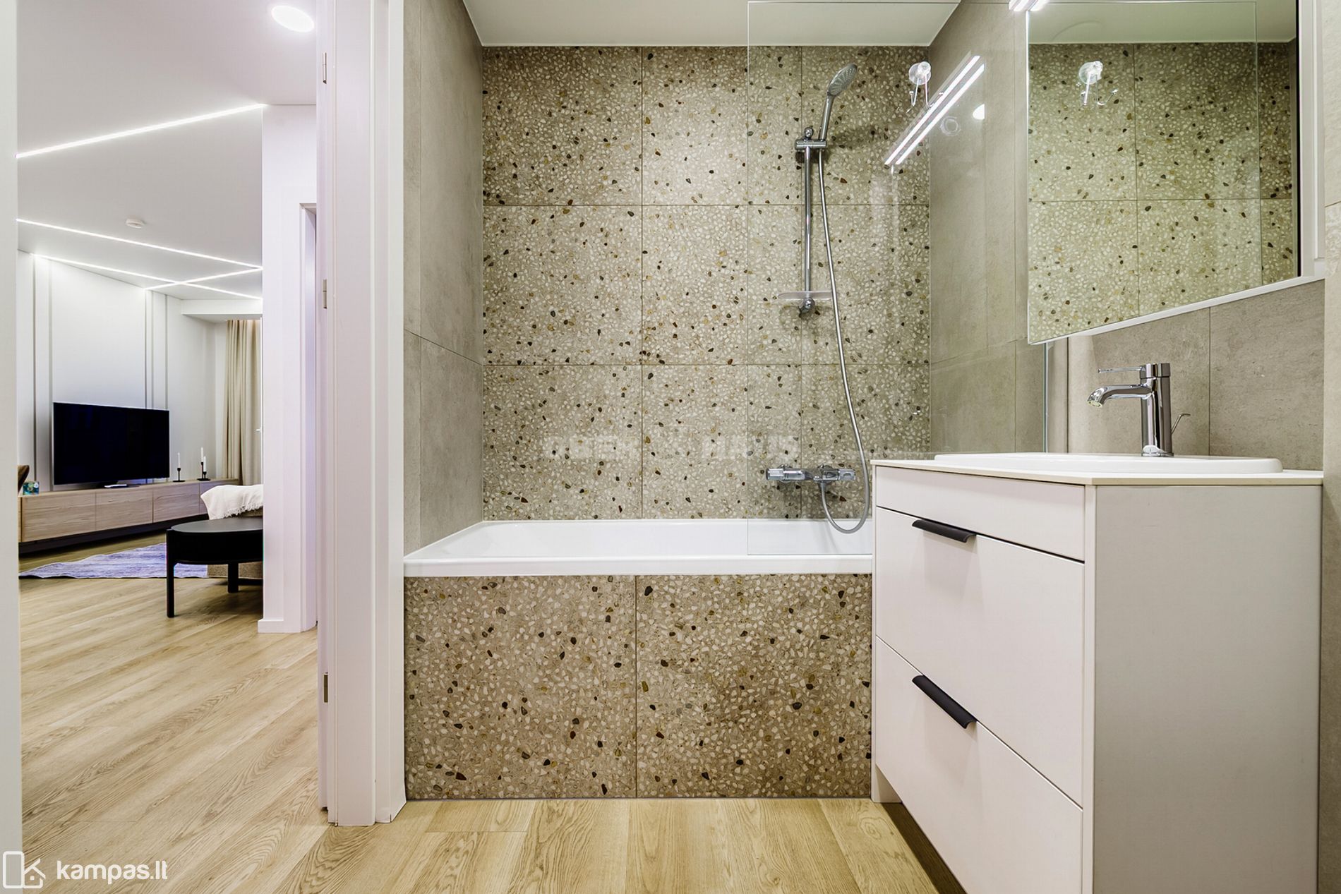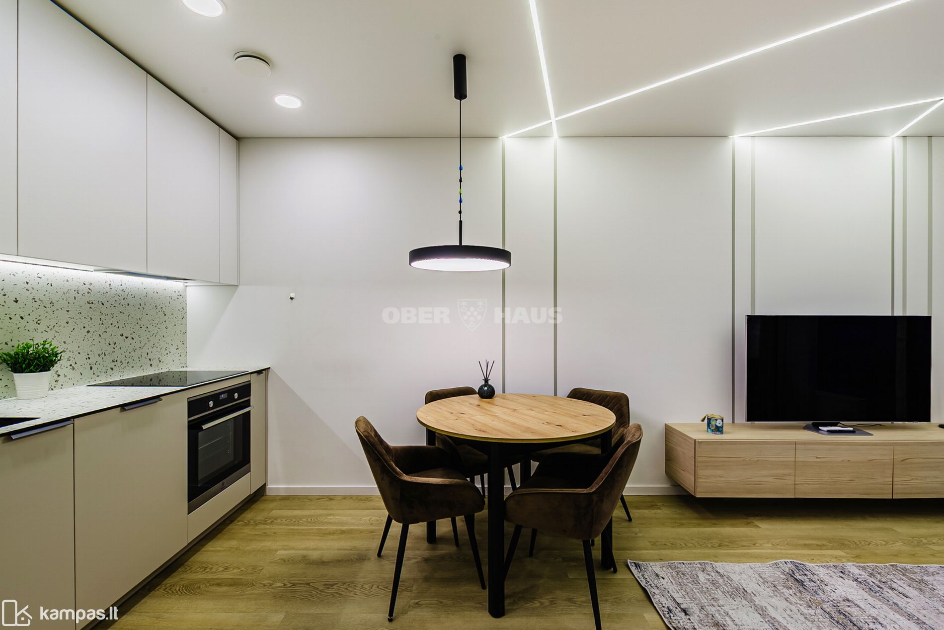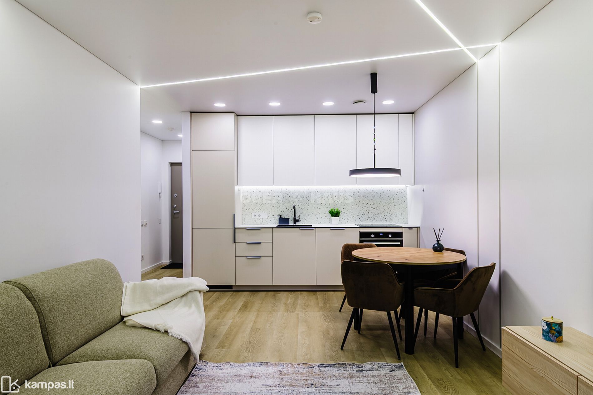 Šviesi svetainė sujungta su virtuve ir valgomojo zona, jaukus miegamasis su dideliu langu, erdvi drabužinė, modernus vonios kambarys su vonia ir skalbimo zona bei balkonas – ideali vieta rytinei kavai ar poilsiui po darbo dienos.