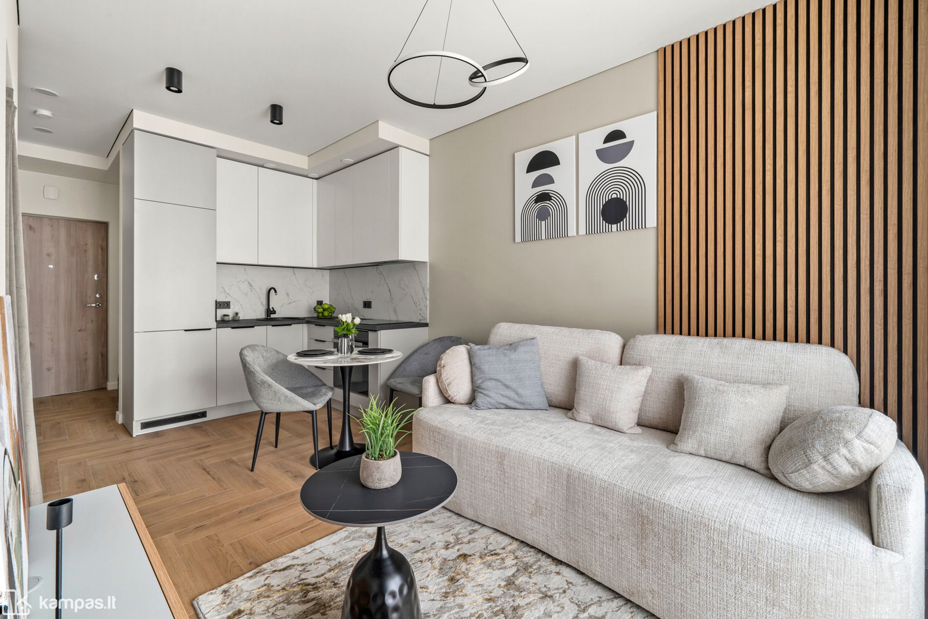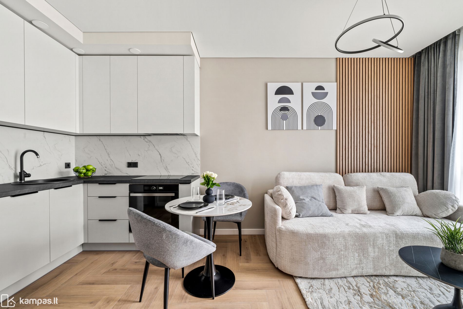 • Svetainės ir virtuvės zona kartu;