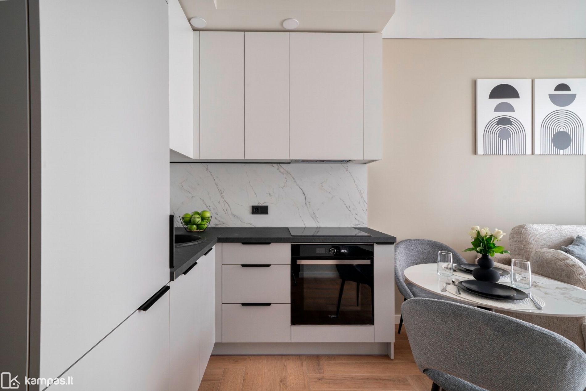 • Virtuvėje - indukcinė kaitlentė, orkaitė;