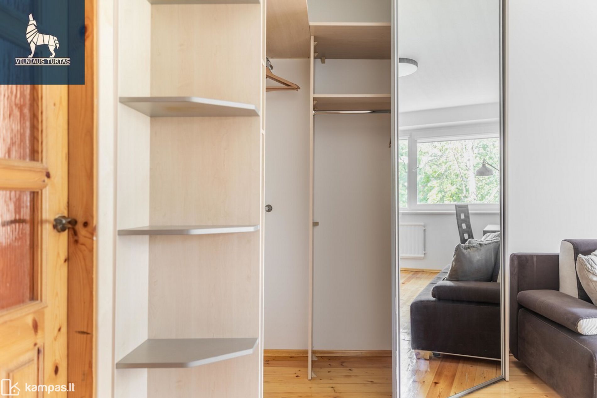 ✓ Didelė įeinama spinta svetainėje, darbo zona;