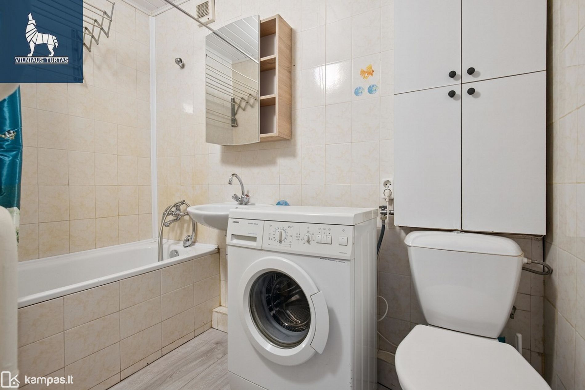 - Vonia su skalbimo mašina.