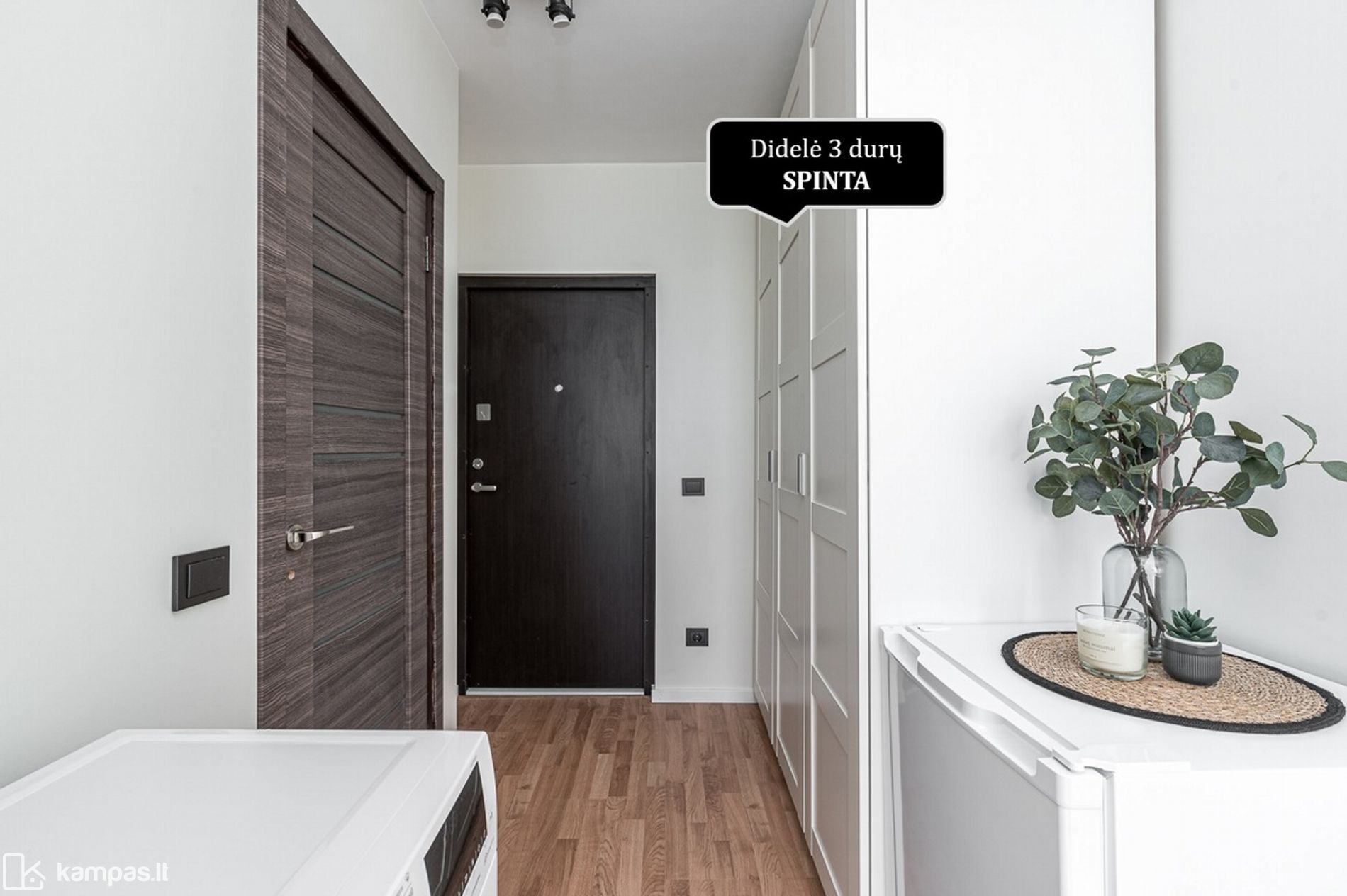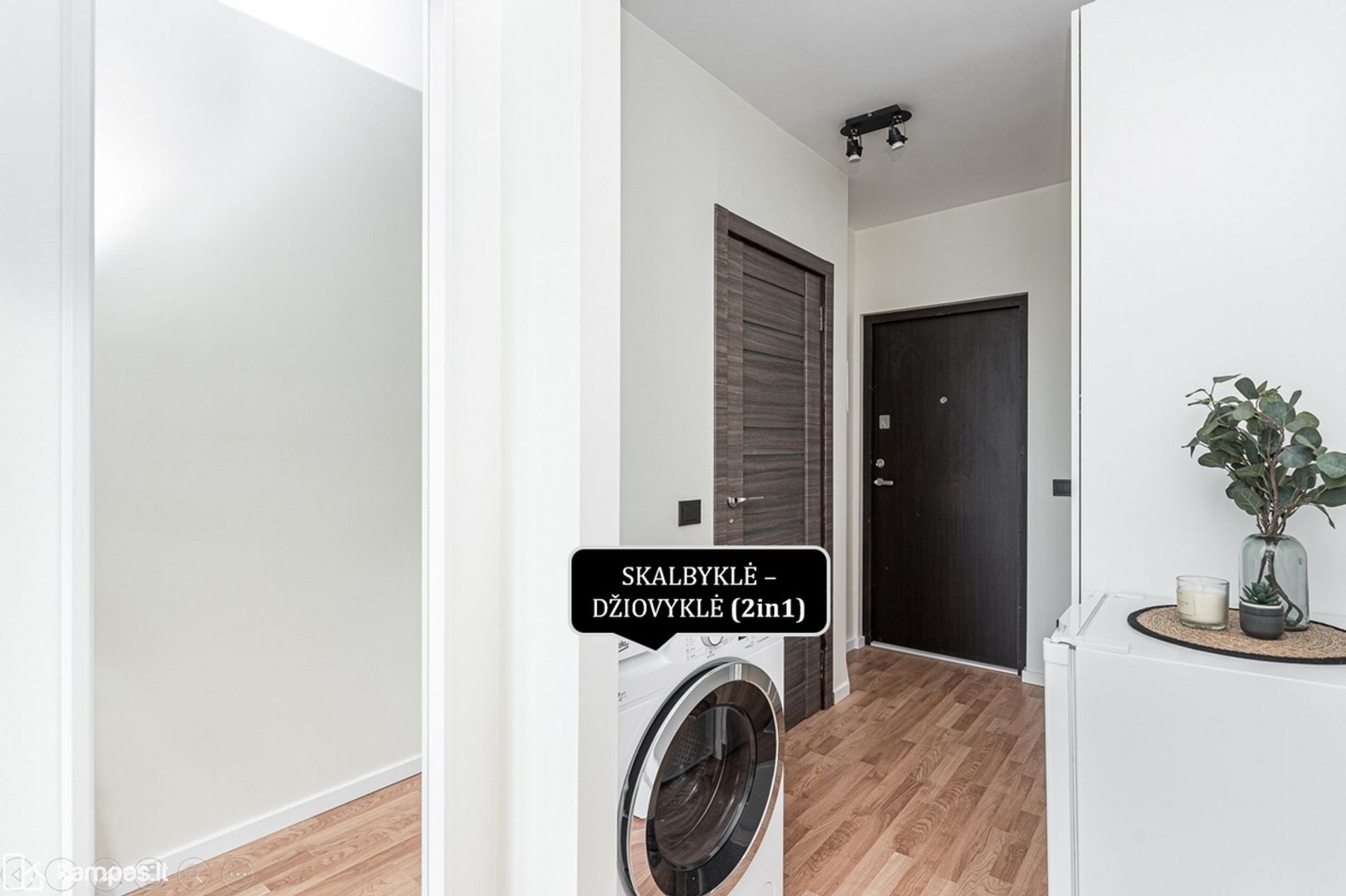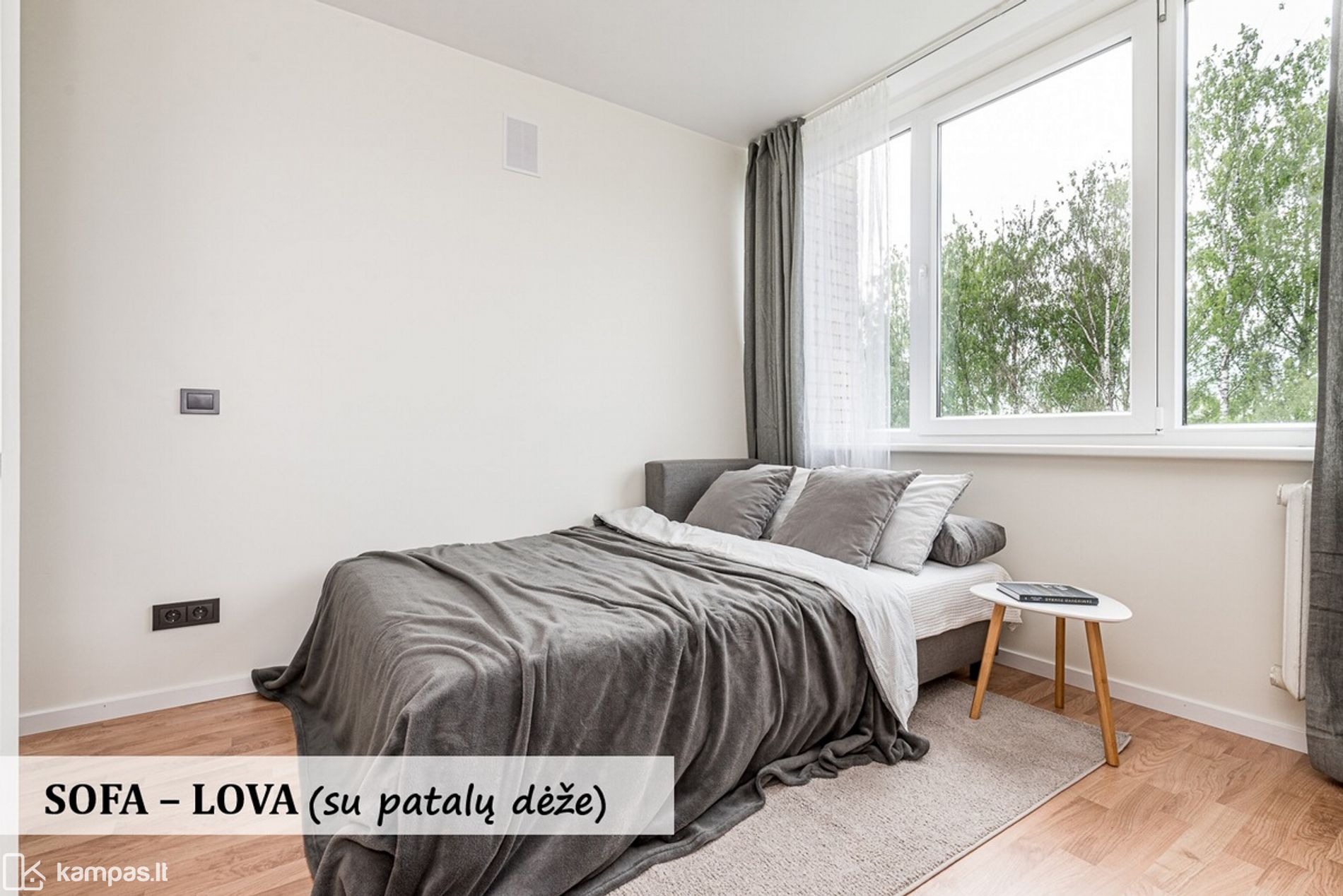 • Butas nuomojamas su baldais (prieškambario spintelė, veidrodis, kambario sekcija, sofa-lova, virtuvės baldai ir kt. baldai matomi nuotraukose) ir buitine technika (skalbimo mašina - džiovyklė, šaldytuvas, el.kaitlenlė, krosnelė - mikrobangų krosnelė). Visi baldai, kurie matosi nuotraukose bus palikti.
