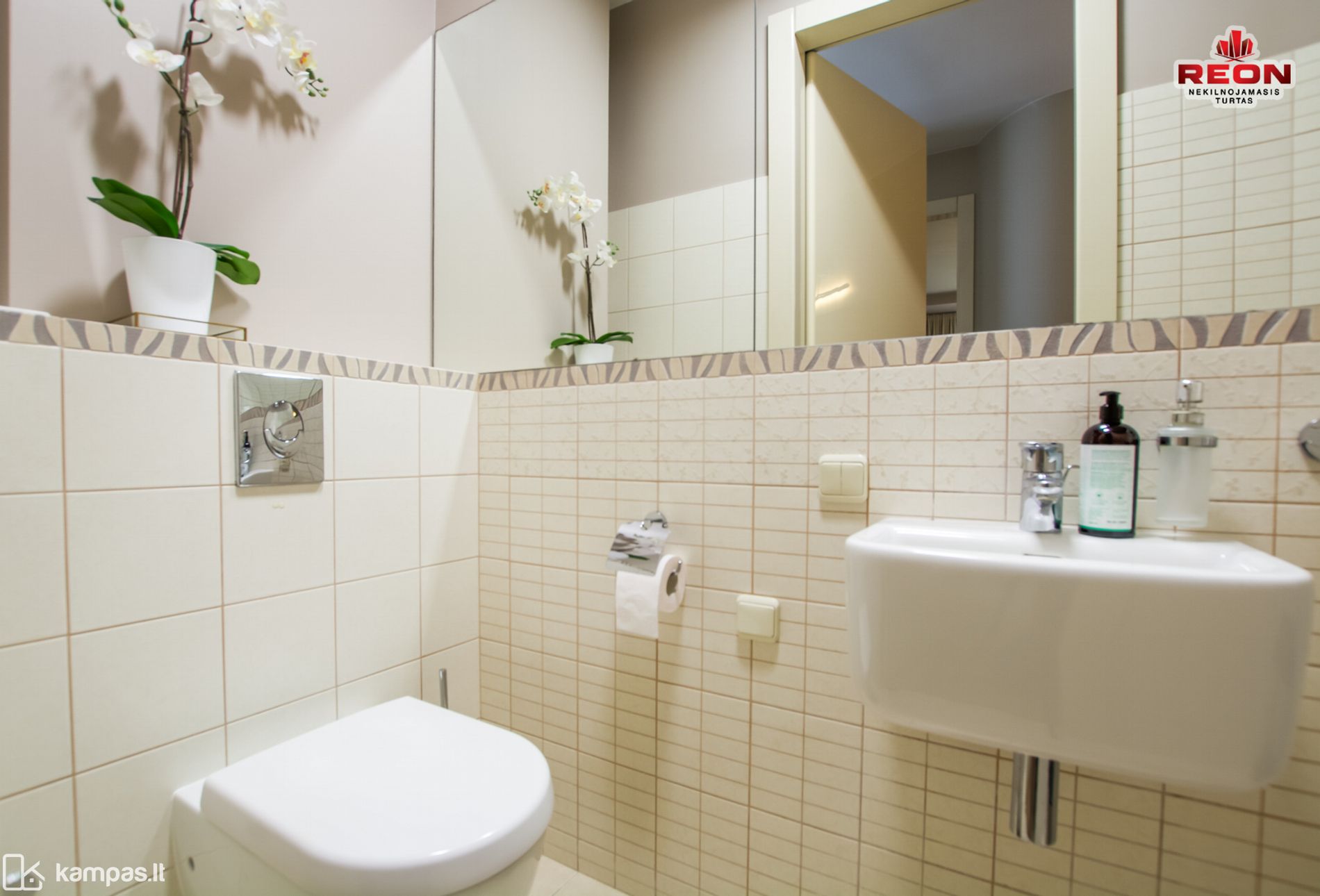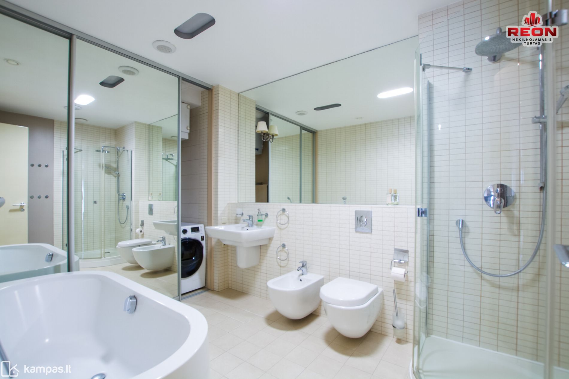 Pagrindinis vonios kambarys itin erdvus – įrengta vonia, dušo kabina, du praustuvai, tualetas, bidė, skalbimo mašina ir džiovyklė. Taip pat yra atskiras svečių tualetas. Butui priklauso patogi drabužinė su integruotomis spintomis bei lentynomis, suteikiančiomis daug vietos daiktų laikymui.