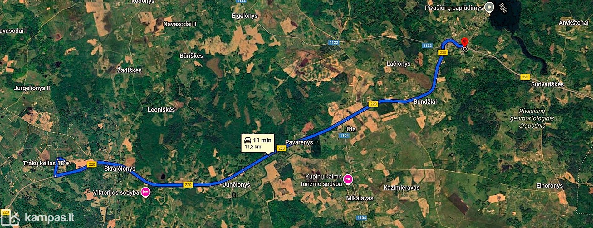 Sklypas patogioje lokacijoje – netoli krašto kelio Nr. 220 (Trakai–Rūdiškės–Pivašiūnai–Alytus), todėl susisiekimas su miestu ir aplinkiniais miesteliais itin patogus.