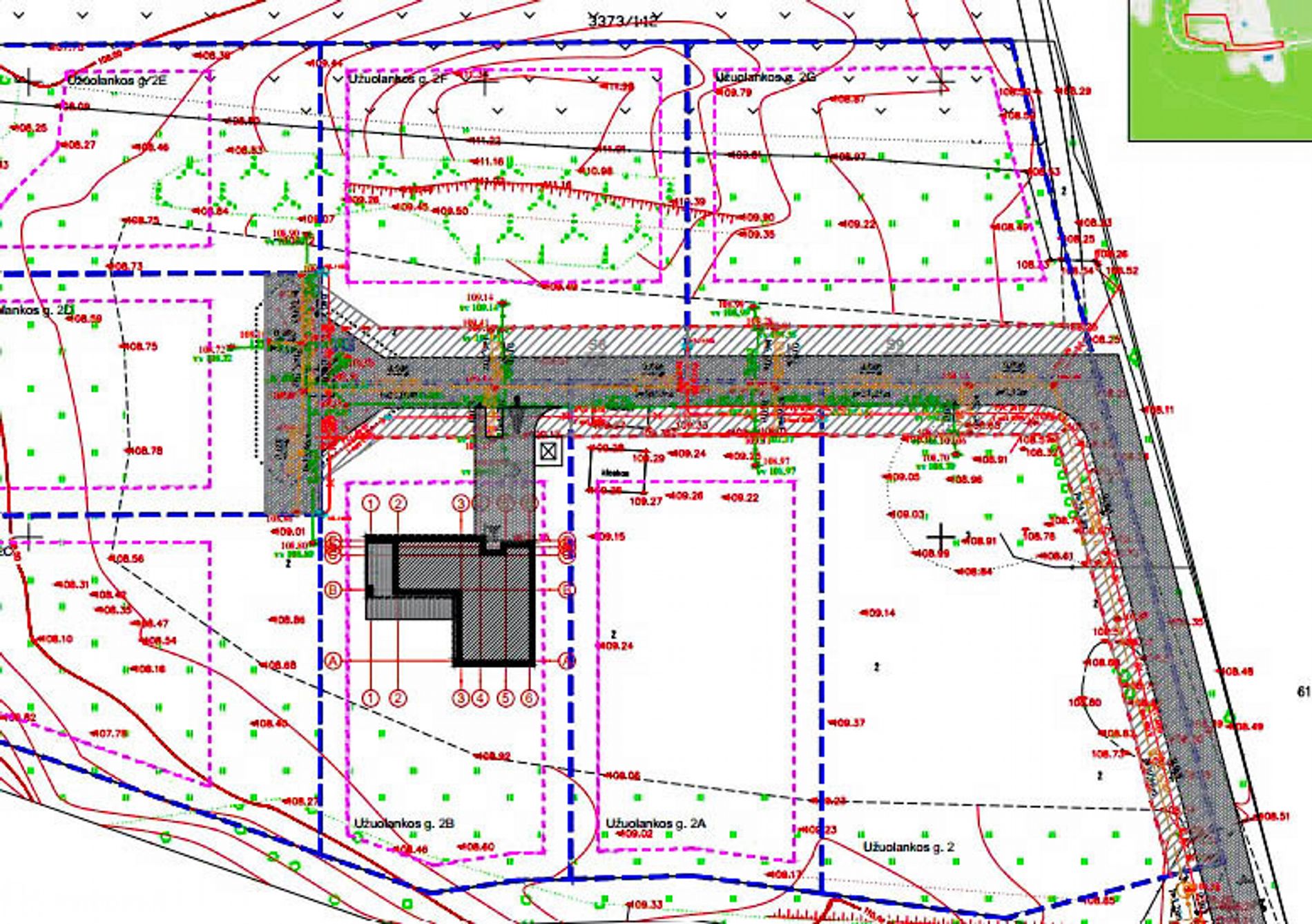 - Pastatas Užuolankos g. 2E - Statinio sienų ir stogo projekcijos užstatymo plotas 197.76 m2, statinio sienų projekcijos