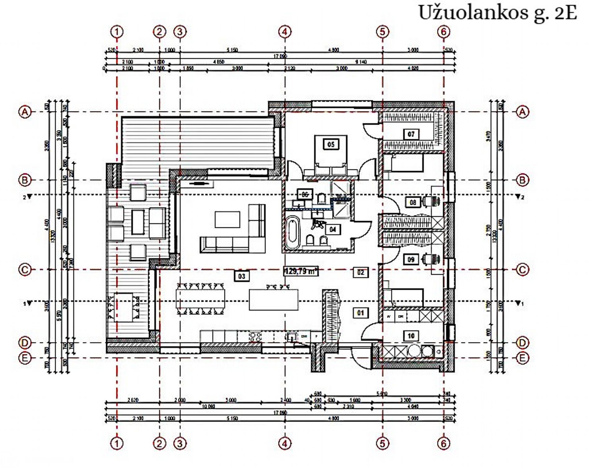 - Svetainė sujungta su virtuve – 52,40 m², natūrali kasdienio bendravimo erdvė