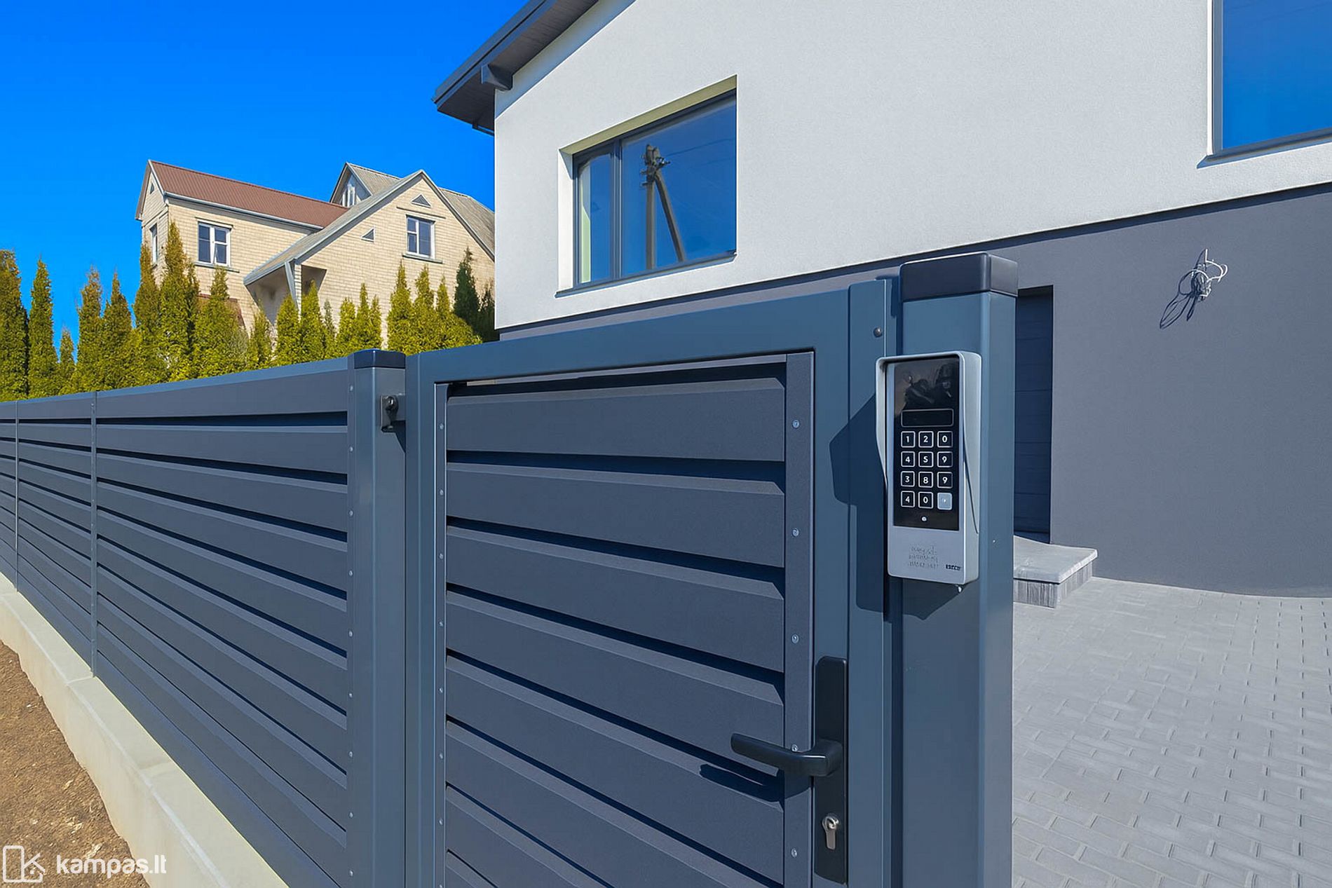 Sklypo plotas – 6,58 arai, teritorija sutvarkyta, naujai įrengtos trinkelės, automatiniai elektriniai vartai su varteliais, integruota telefonspynė su vaizdo kamera ir galimybe valdyti tiek vartus, tiek vartelius nuotoliniu būdu.