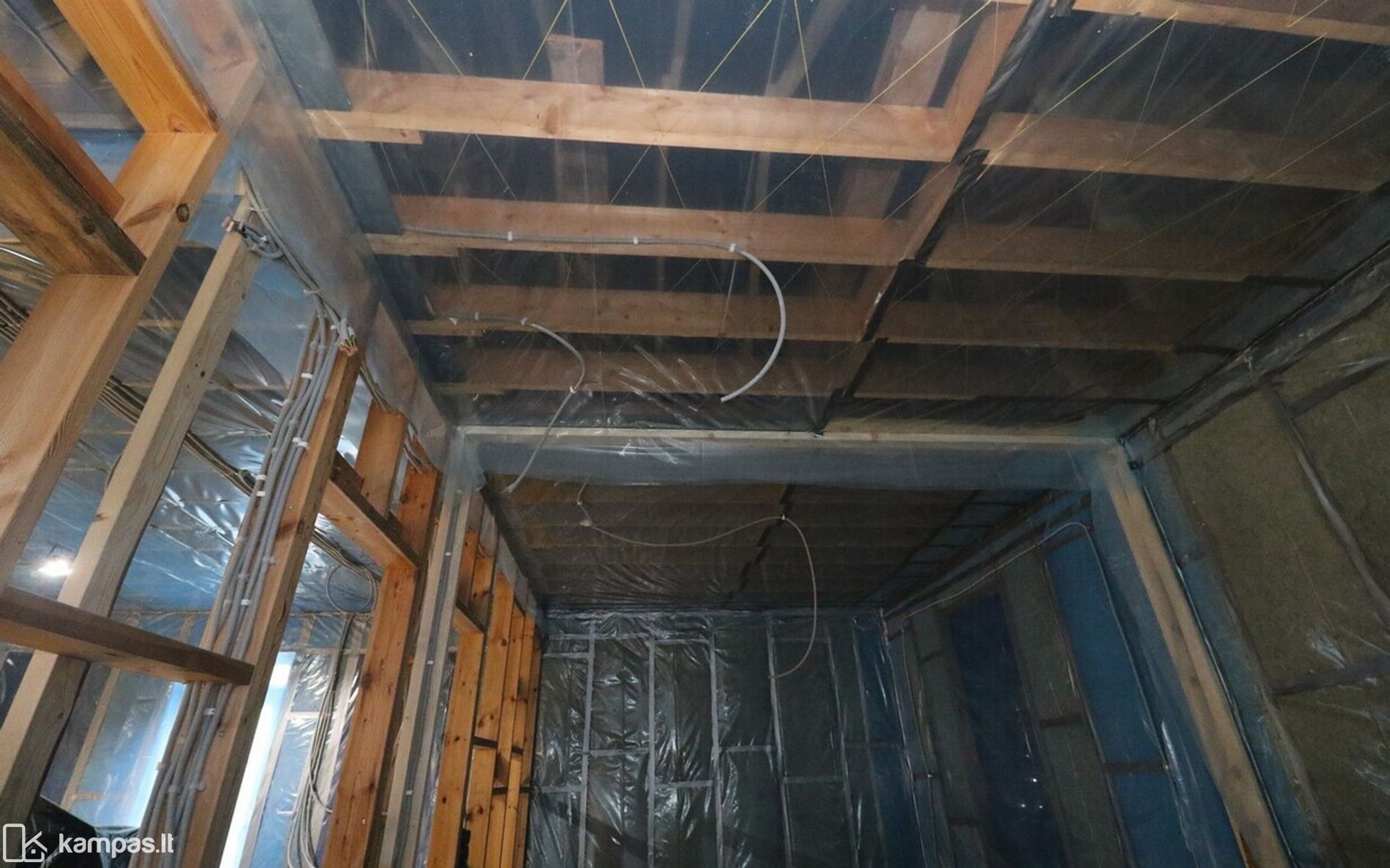 – TAI VIENO AUKŠTO 79,84 KV. NAMAS SU MANSARDA, KURIOJE DAR BŪTŲ GALIMYBĖ ĮSIRENGTI APIE 40 KV.M PLOTĄ;