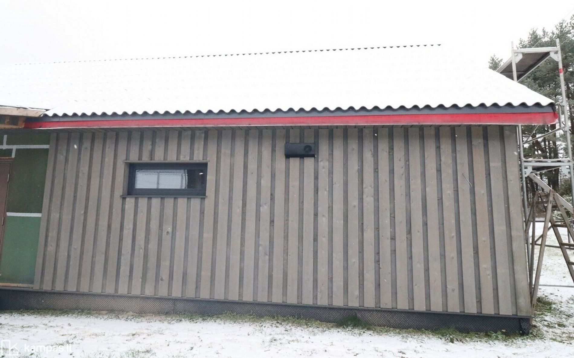 – PARDUODAMAS SU DALINE APDAILA, ŠIUO METU KAIP TIK BAIGINĖJAMAS LAUKO APDAILINIŲ LENTŲ APKALIMAS;