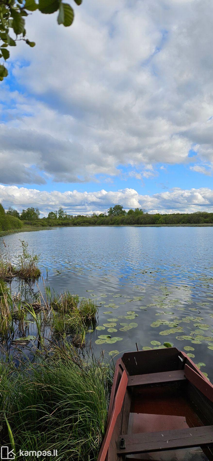 Parduodama sodyba, žemė ribojasi su ežero pakrante, rami vieta , sodyboje auga seni medžiai, didelis sodas. Namas remontuotinas, yra daugiau apgriuvusių ūkinių statinių.