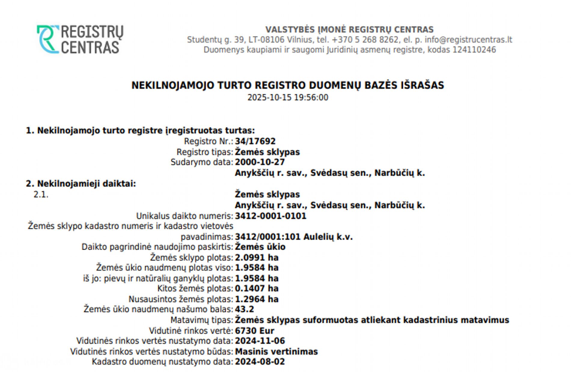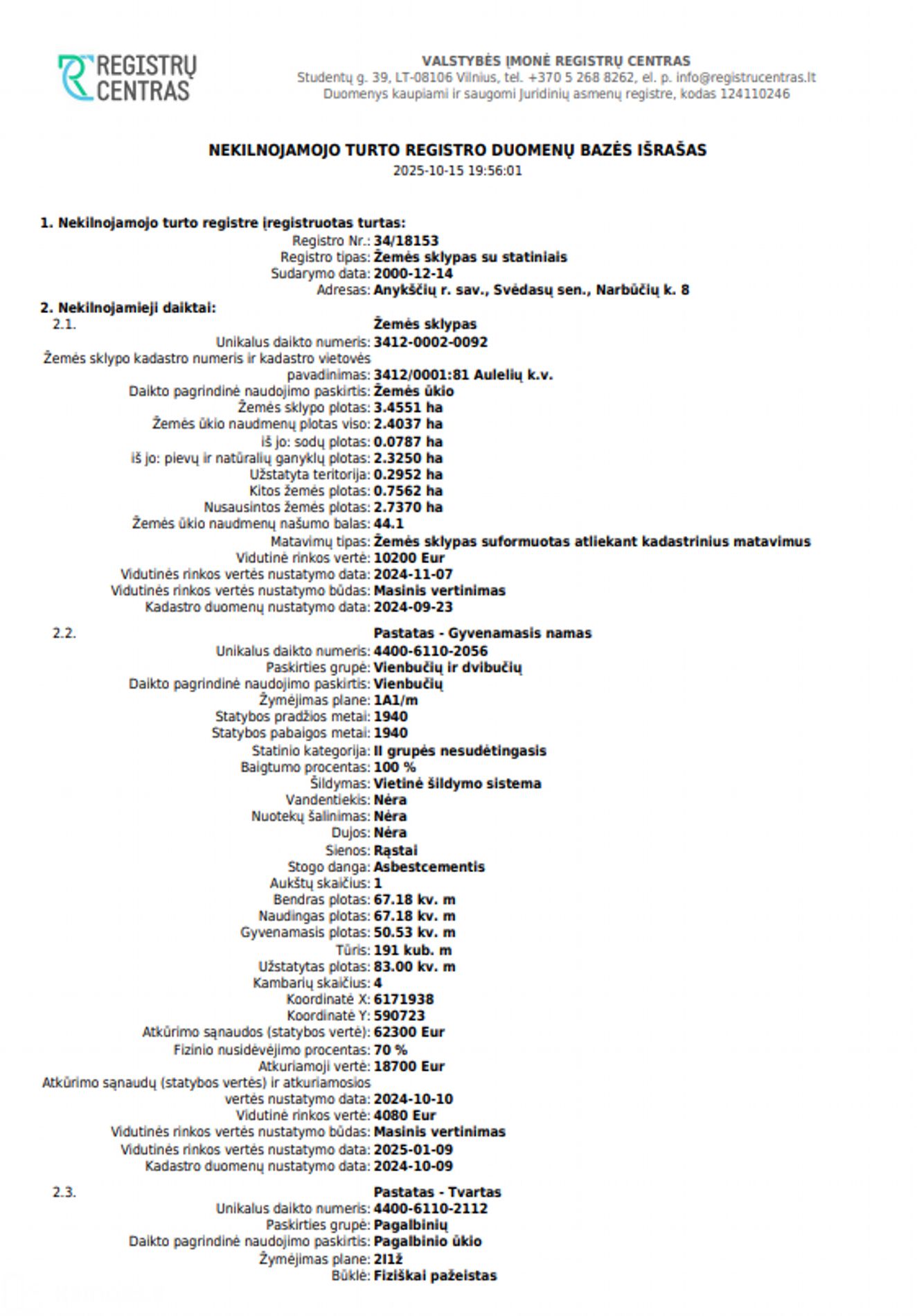 Už papildomą kainą parduodamas sklypas, kurio plotas 209,91 arų. Sklypas ribojas su Narbūčio ežero pakrante.