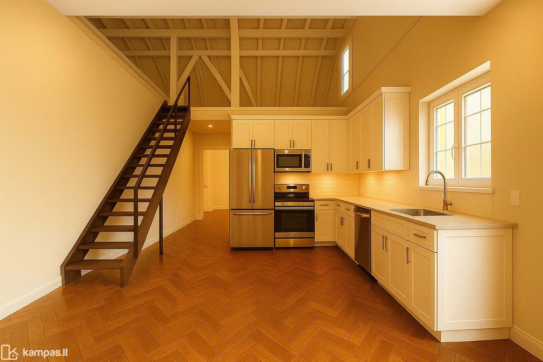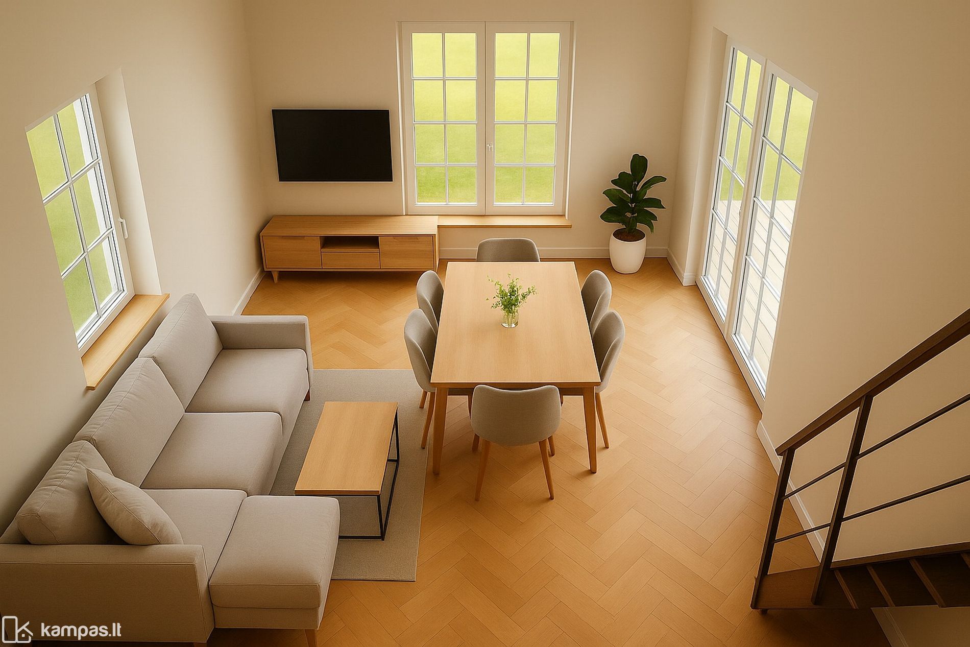 - Išskirtinai erdvi svetainės su virtuve erdvė.