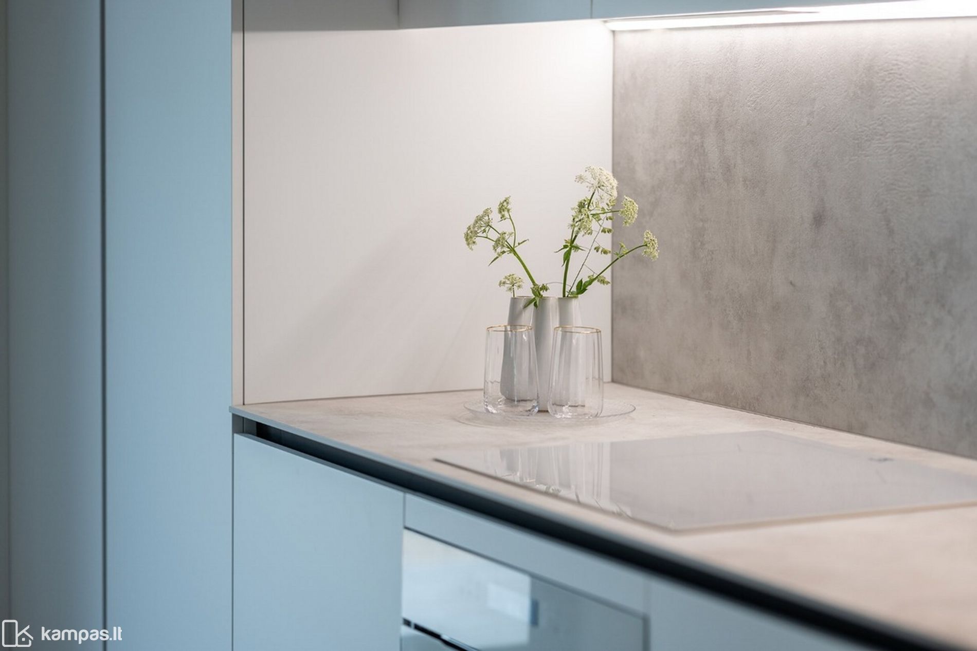 - Virtuvėje sumontuotas kokybiškas virtuvinis komplektas su HPL stalviršiu