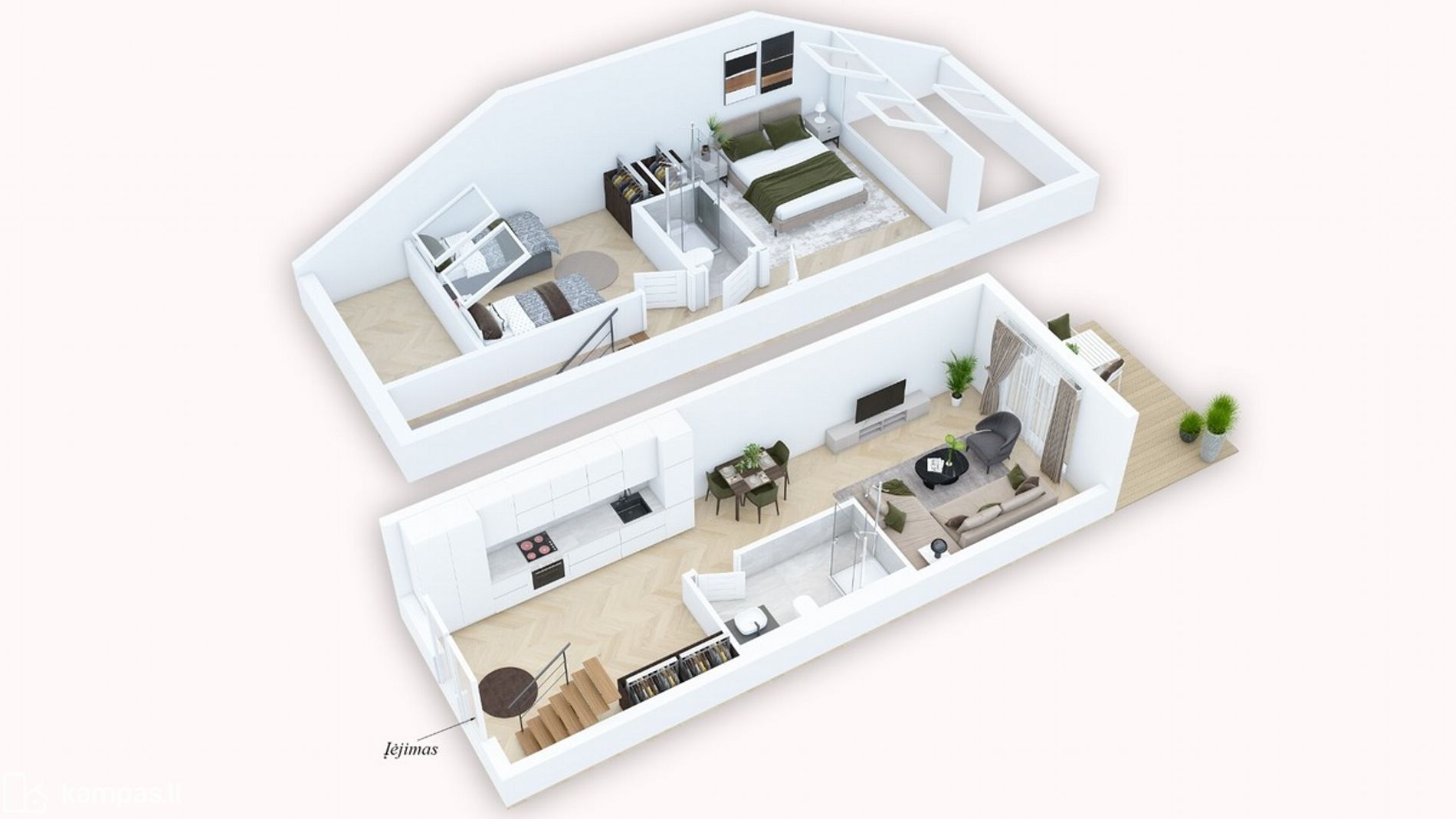 - Svetainė vienoje erdvėje su virtuve;