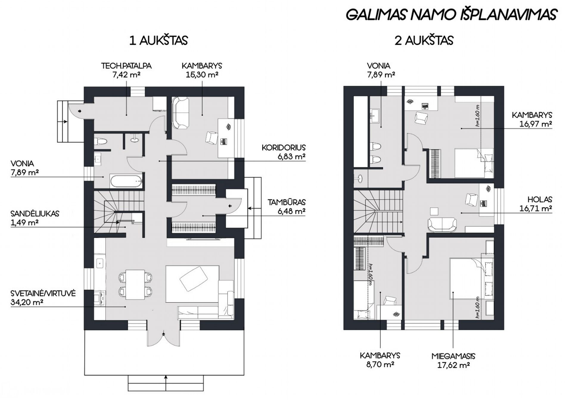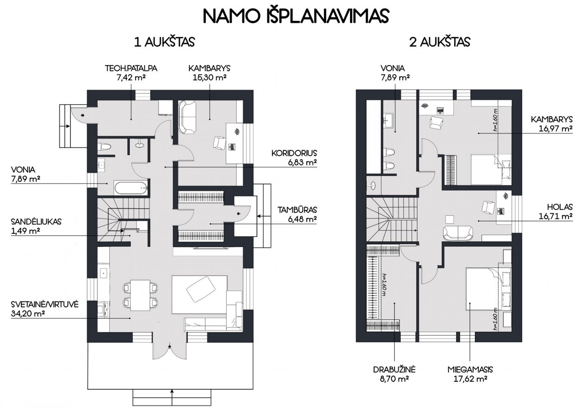 • Praktiškai ir funkcionaliai suplanuotos erdvės;