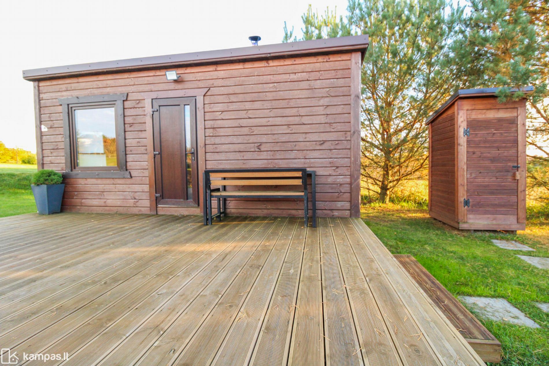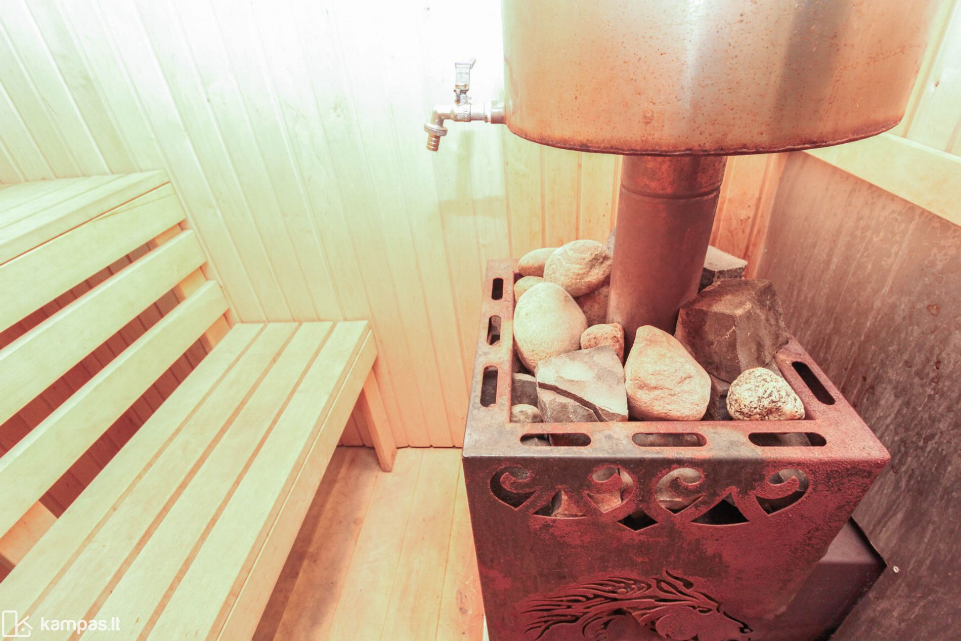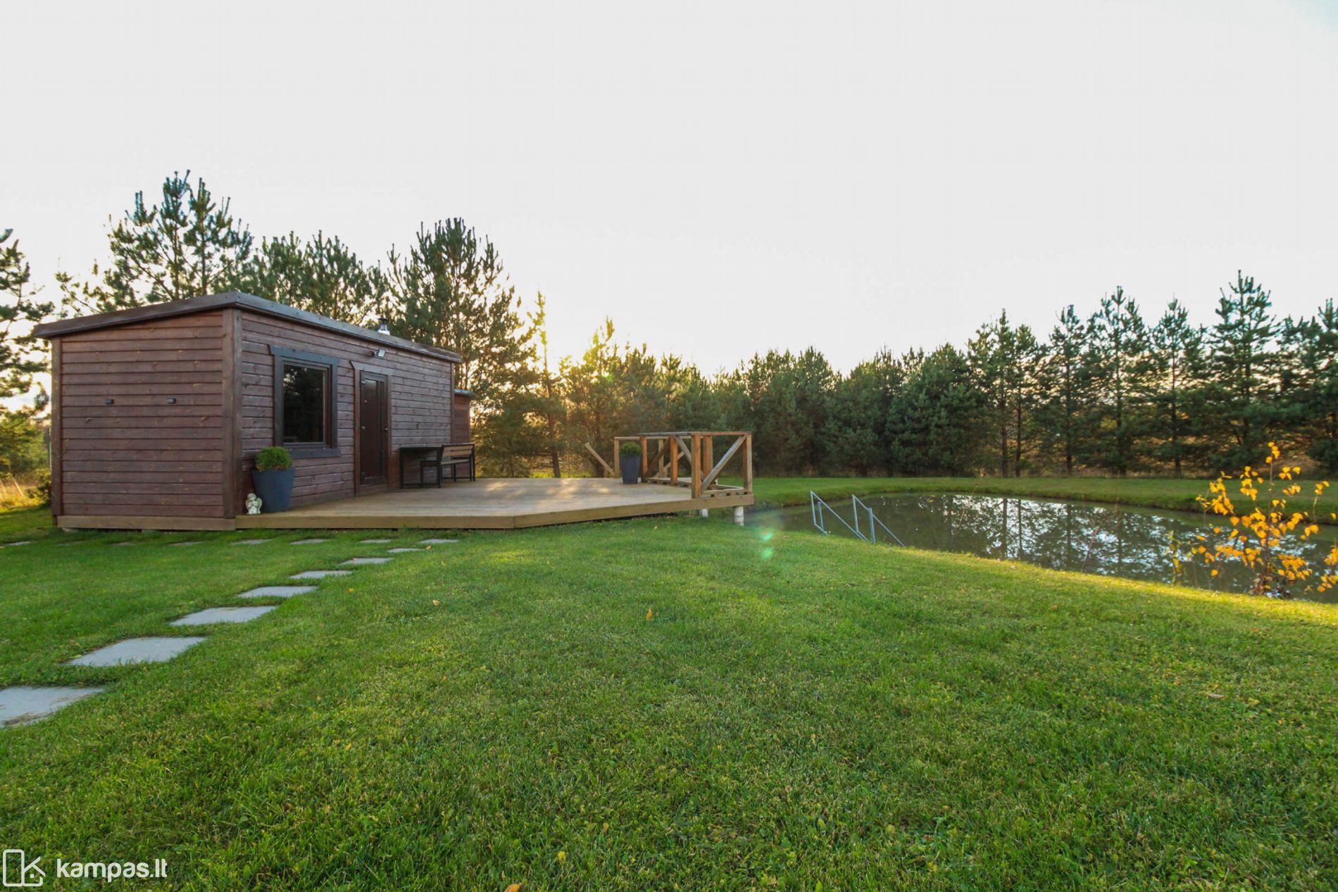 Laisvalaikio zona su pirtimi, didele terasa ir nuosavu vandens telkiniu.