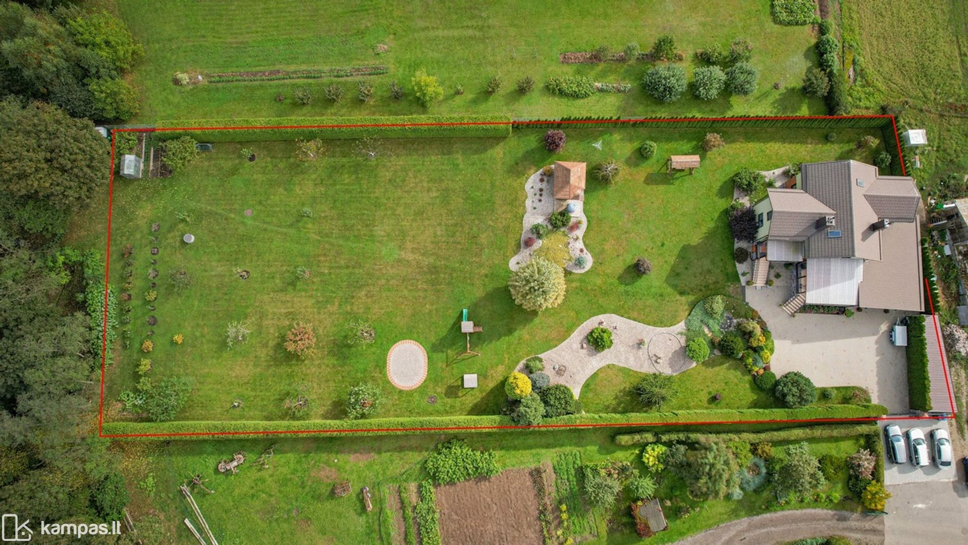 - Išpuoselėta ir apsodinta namo aplinka, išklotos trinkelės