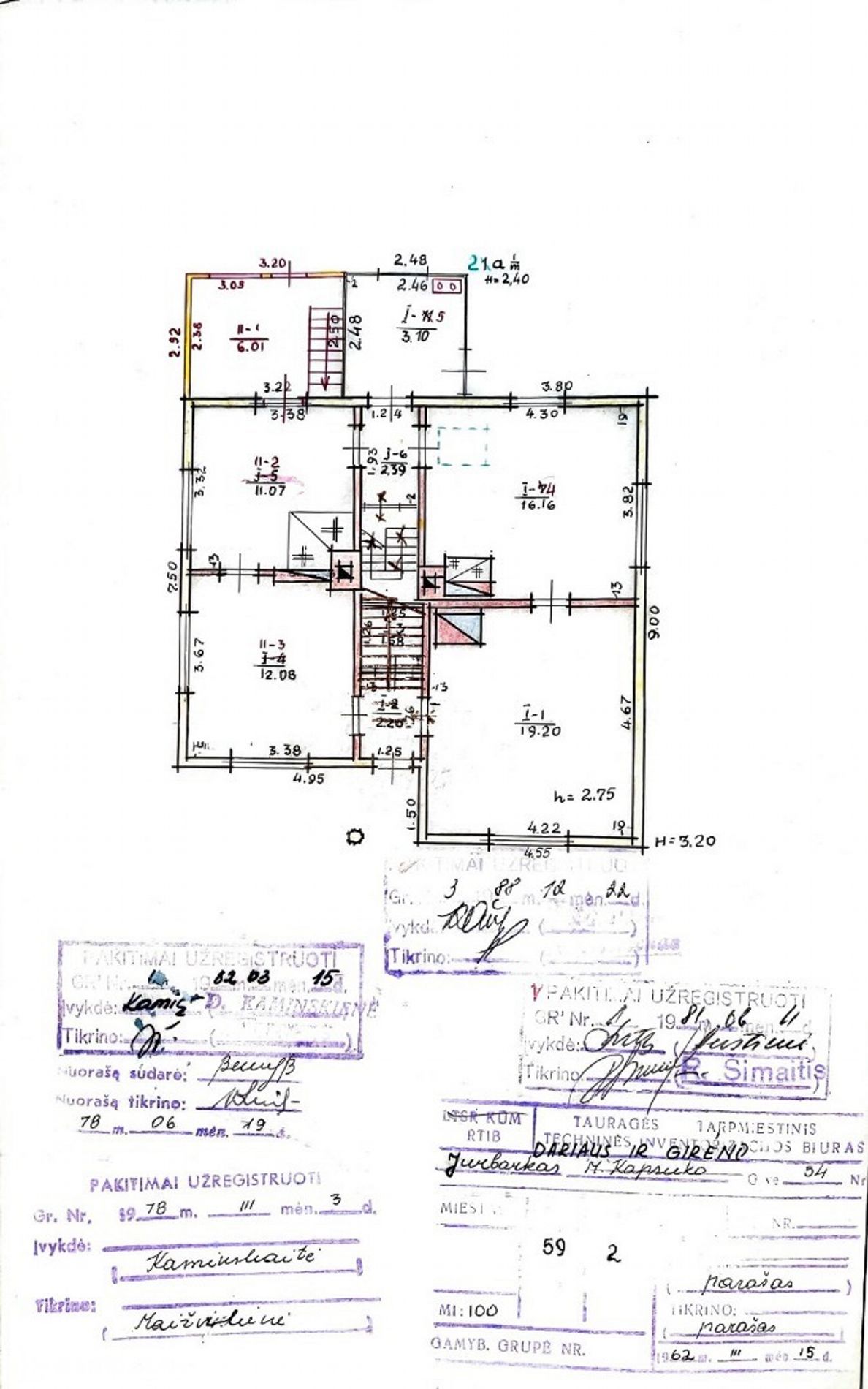 - kambariai - 19,20 kv. m., 12,08 kv. m., 11,07 kv. m.;