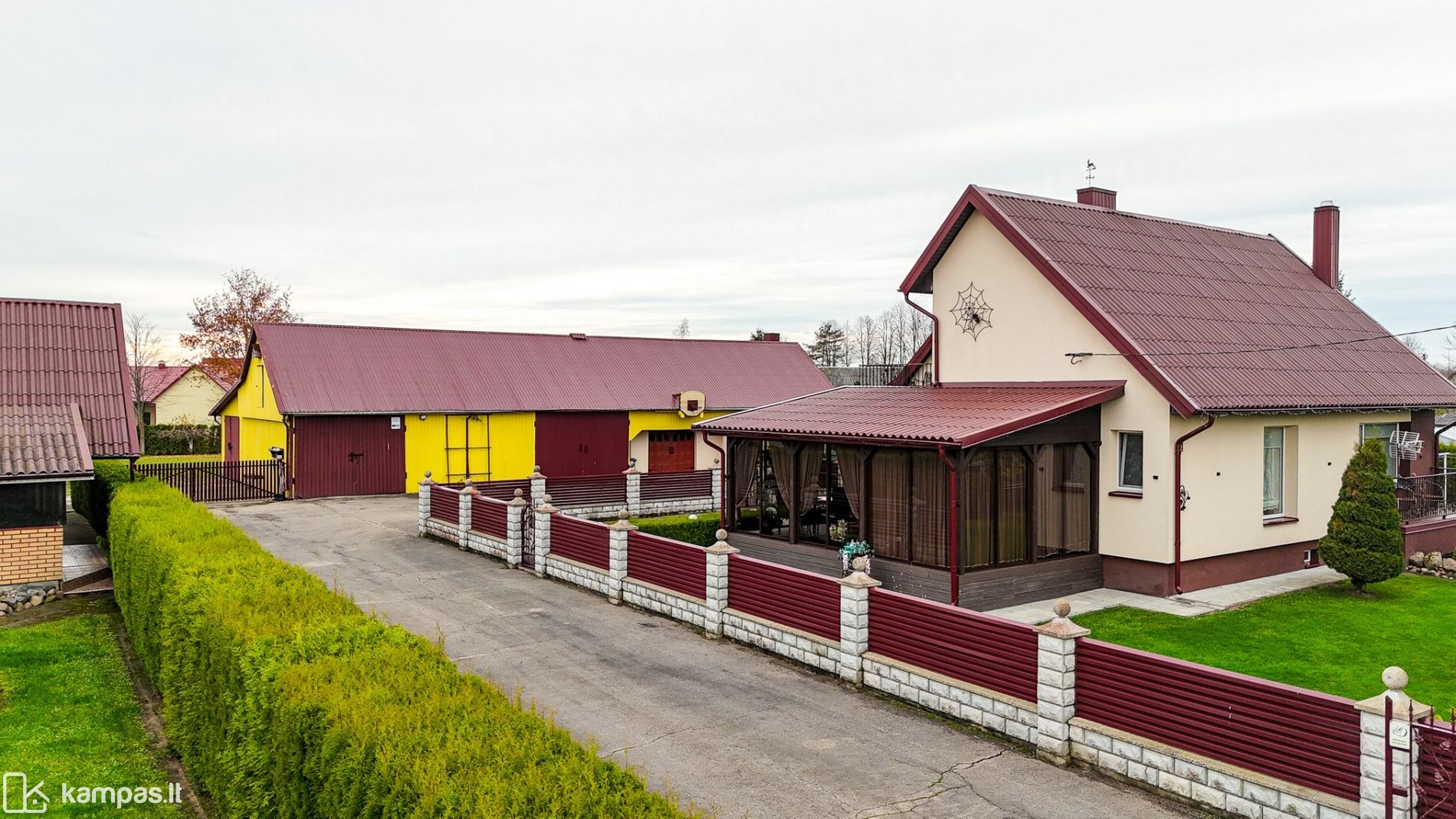 - kiemas išasfaltuotas, sumontuoti platūs įvažiavimo vartai, sode auga vaismedžiai, yra nedidelis daržas;