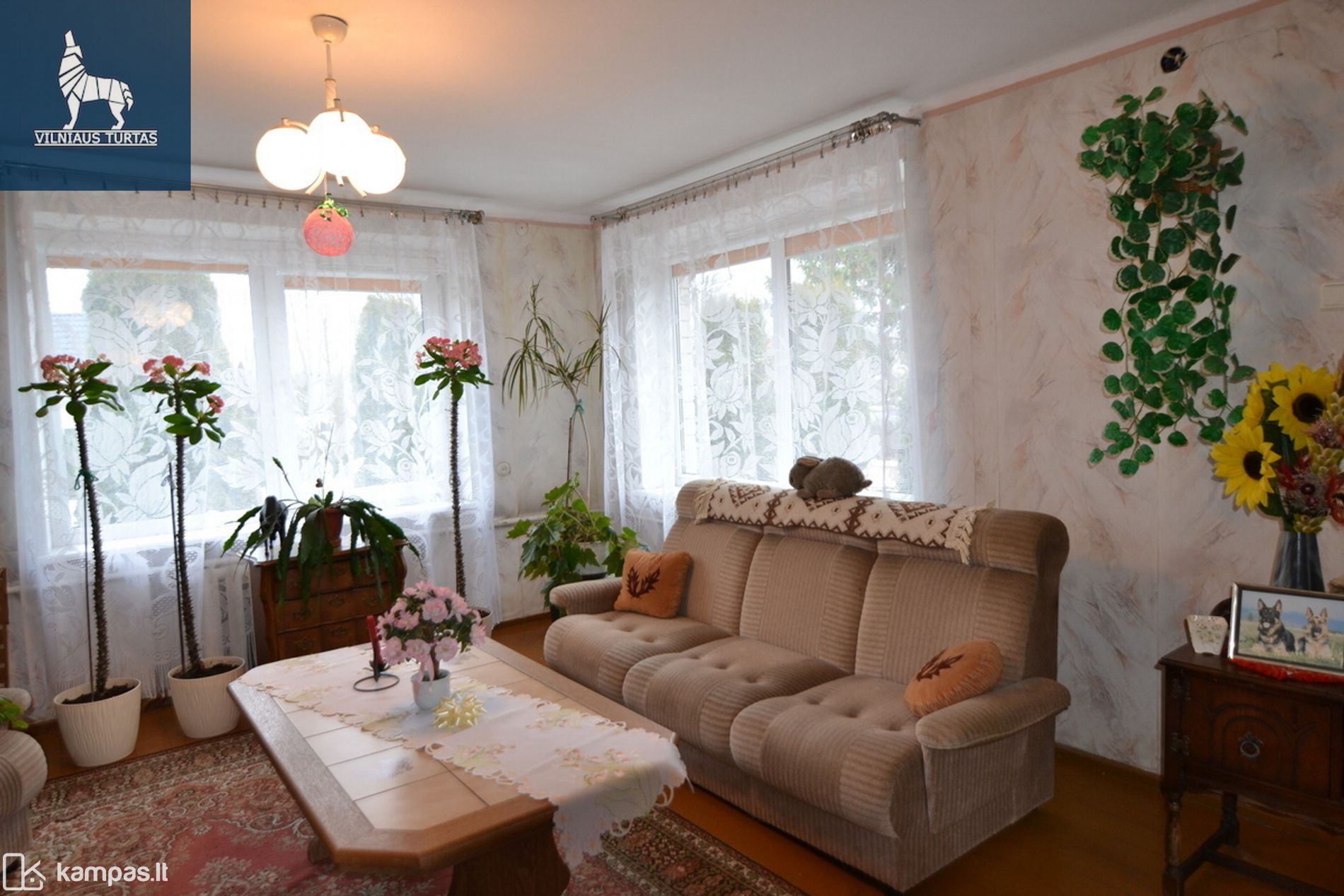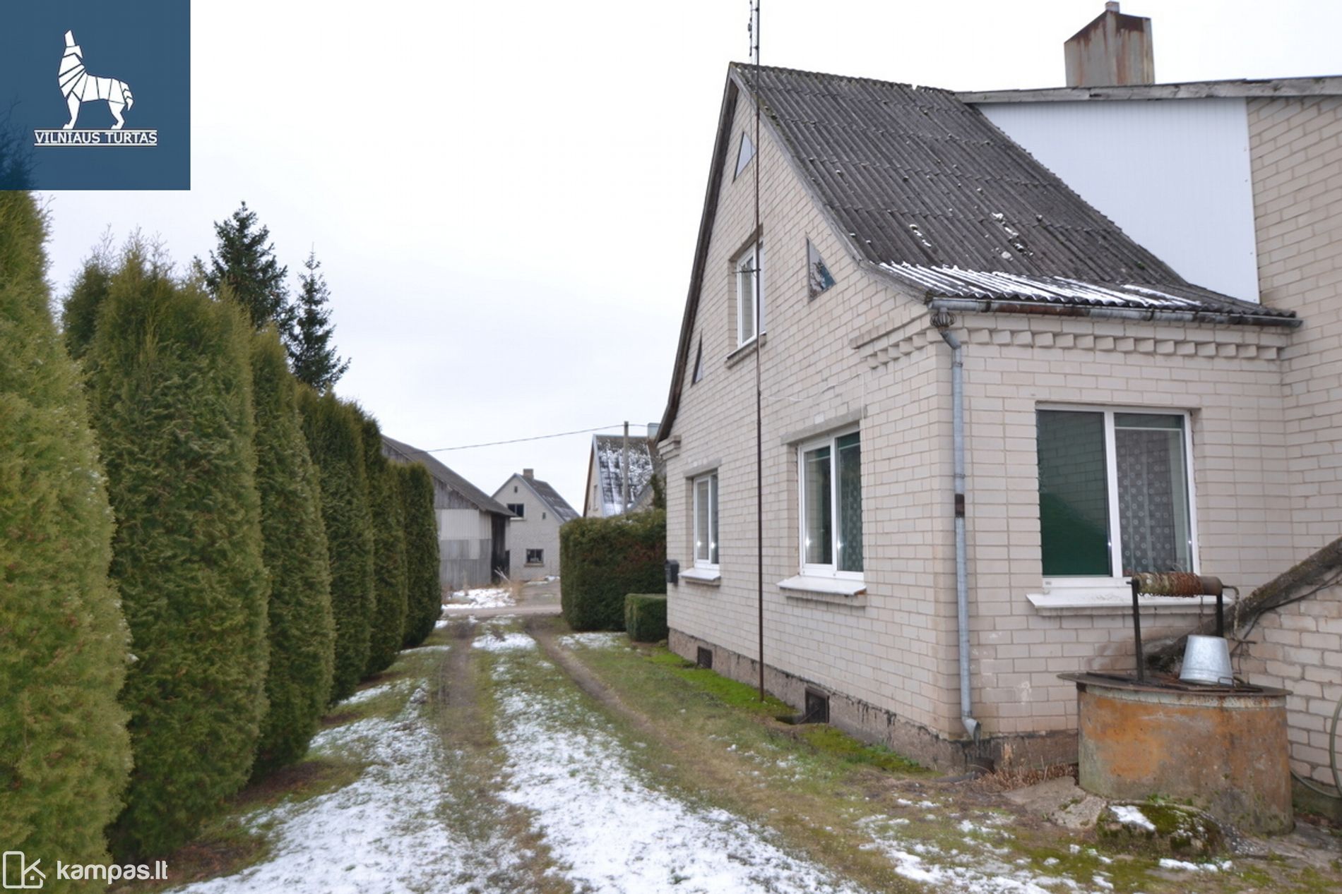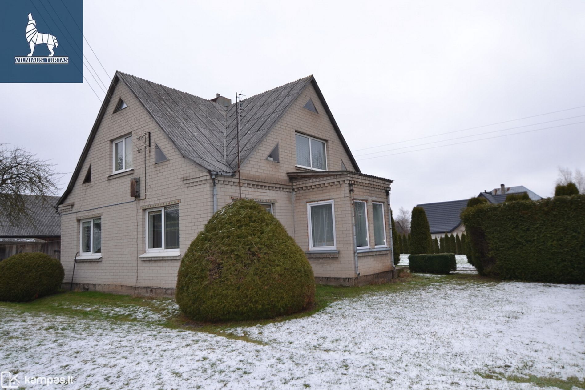 Įrengimas: -išorinė apdaila - baltų plytų -vidaus sienos - tinkuotos, dažytos -Gryndys – parketas ir medinės lentos –rūsyje kieto kuro katilas -radiatoriai visuose kambariuose