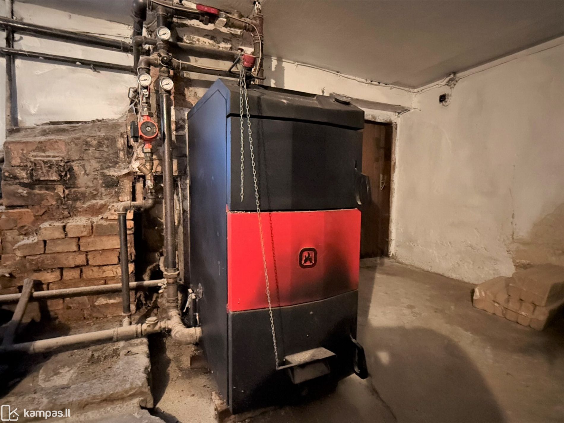 • Šildymas kieto kuro katilu – briketais, visame pirmame aukšte yra radiatoriai