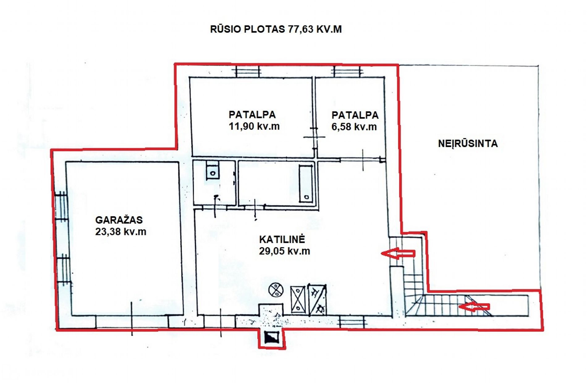 • Bendras plotas 239,43 kv.m (rūsys su garažu, I aukštas ir mansarda)
