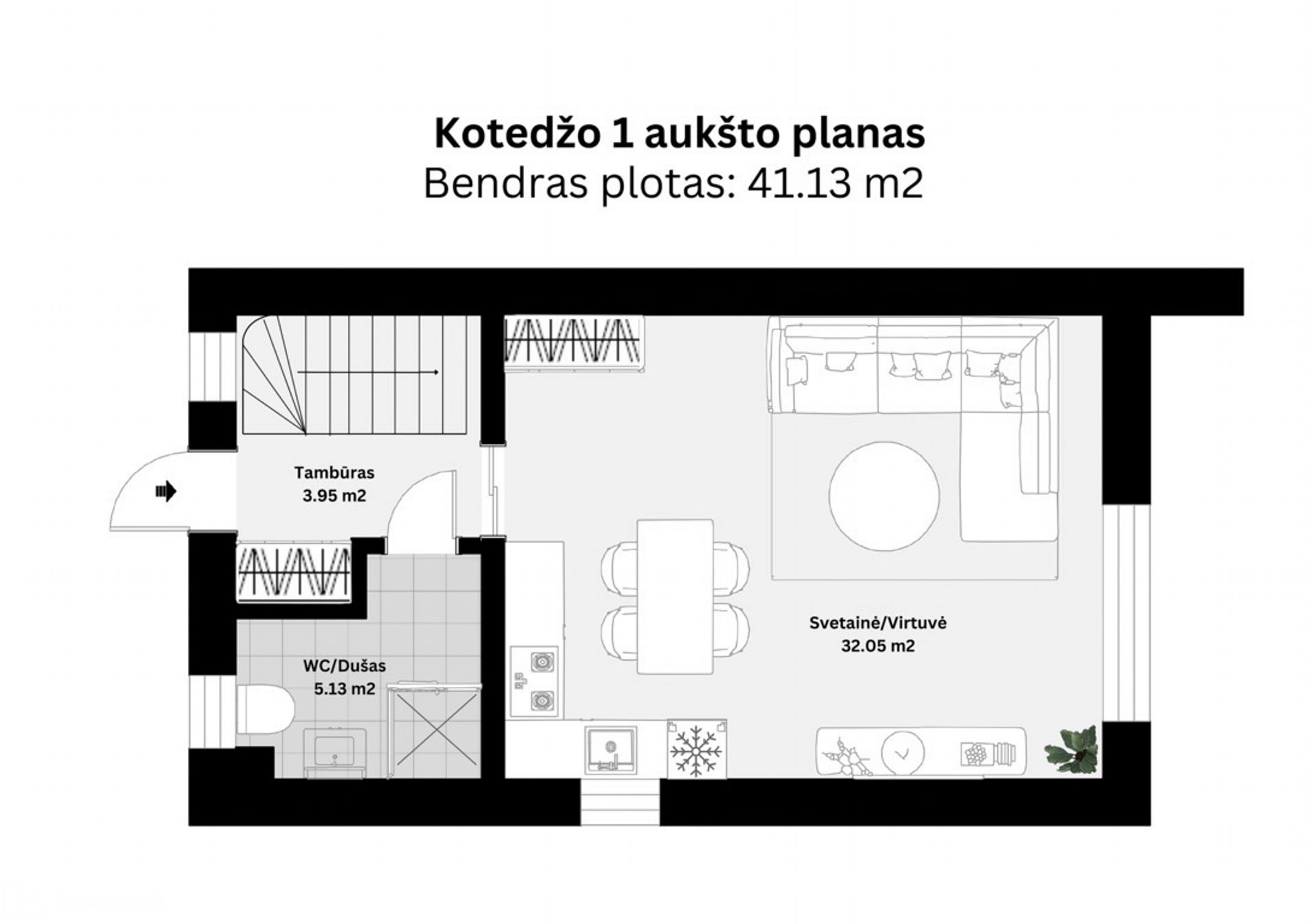 • Kotedžui priklauso 3,4 arų žemės sklypas