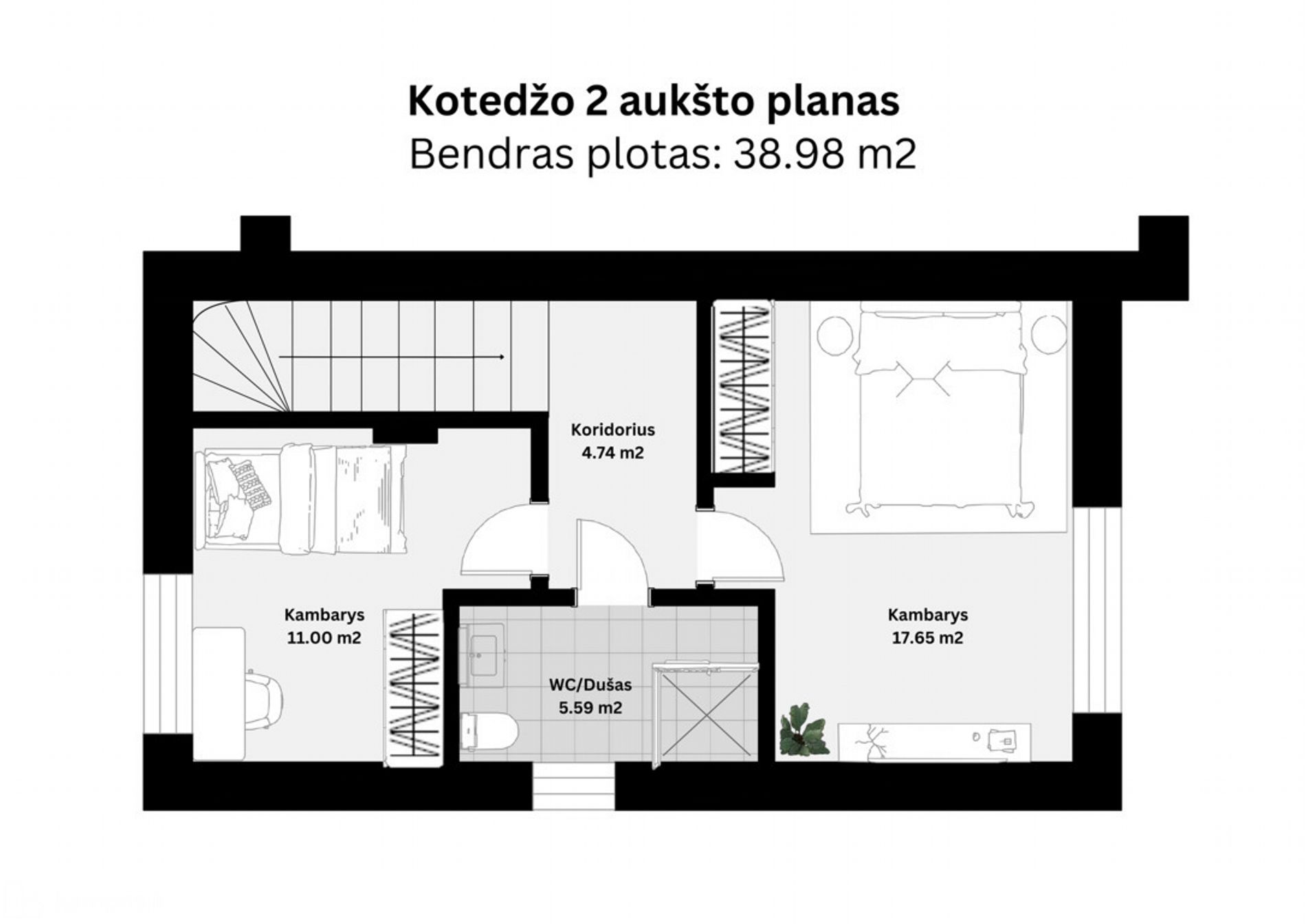 • Į antrą aukštą veda mediniai ąžuolo masyvo laiptai