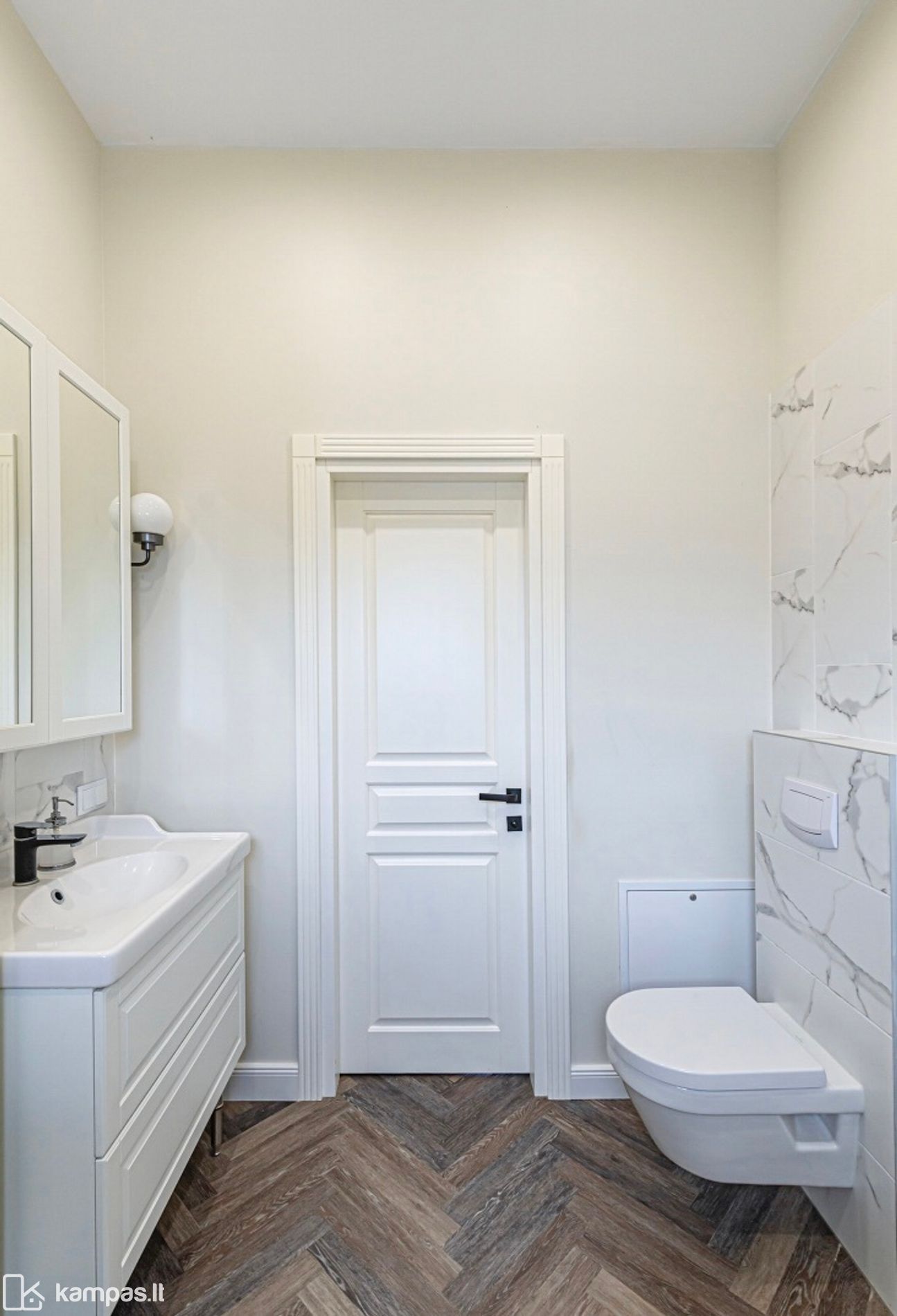 ✅Erdvus prieškambaris su integruotomis spintomis iki lubų.