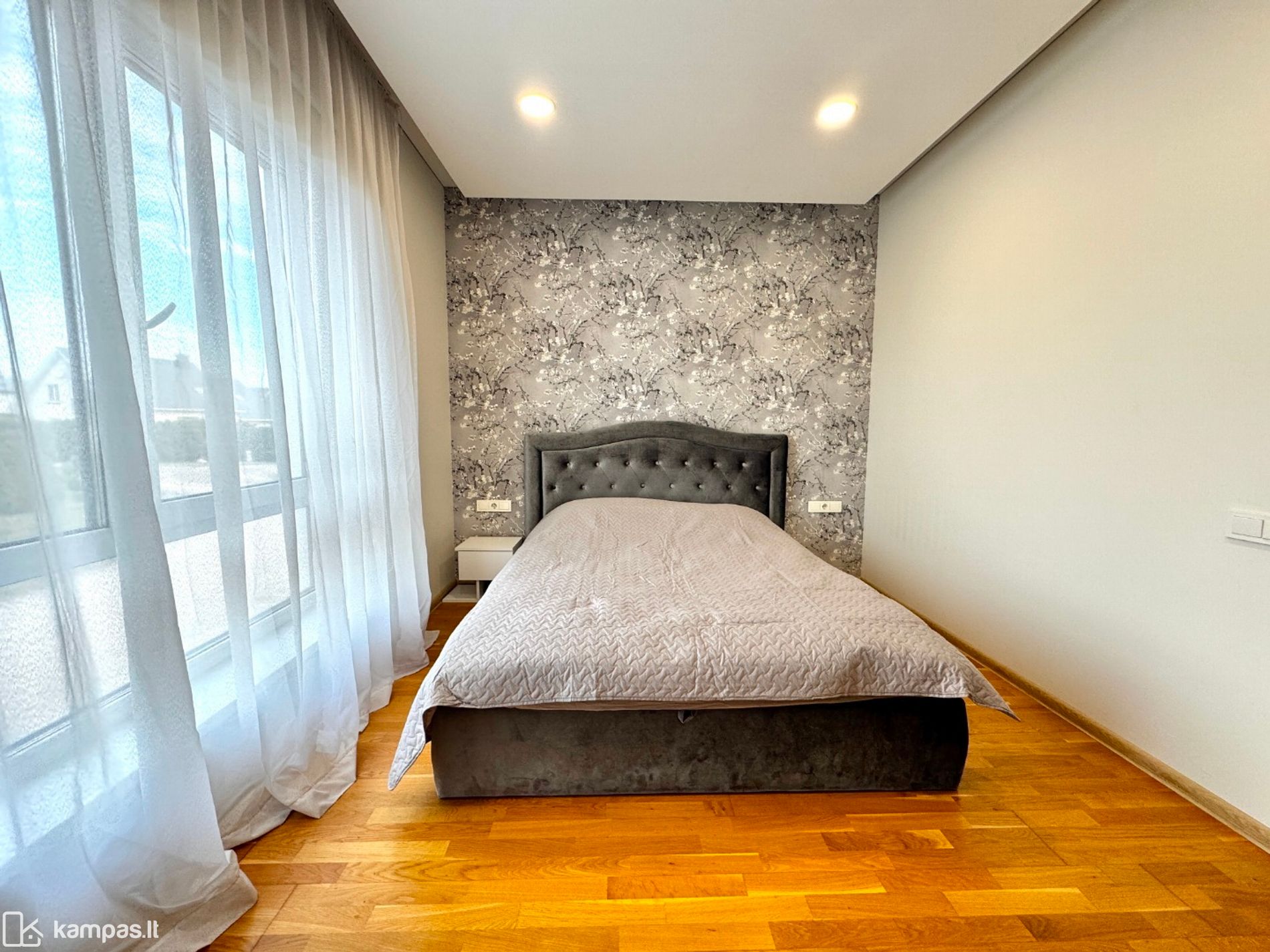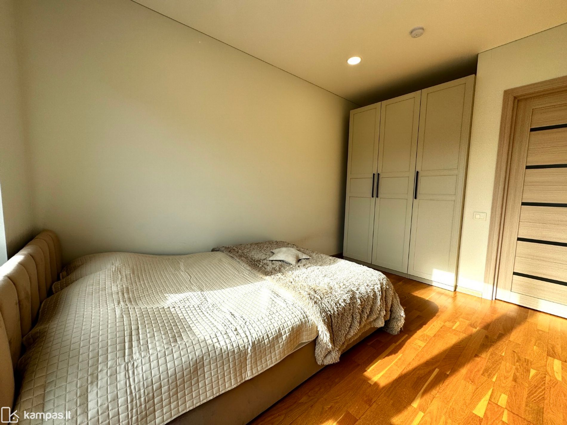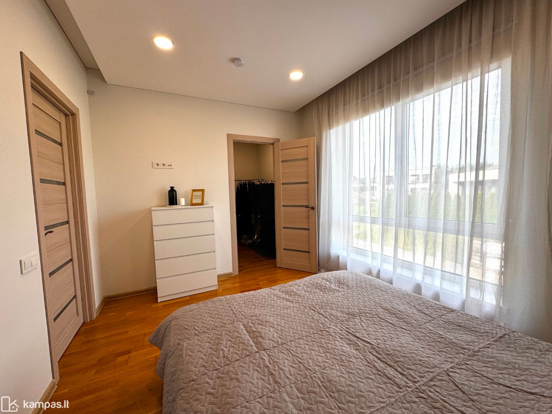 Antrame aukšte trys miegamieji – kiekvienam savo kampas. Tėvų miegamajame yra atskira drabužinė.