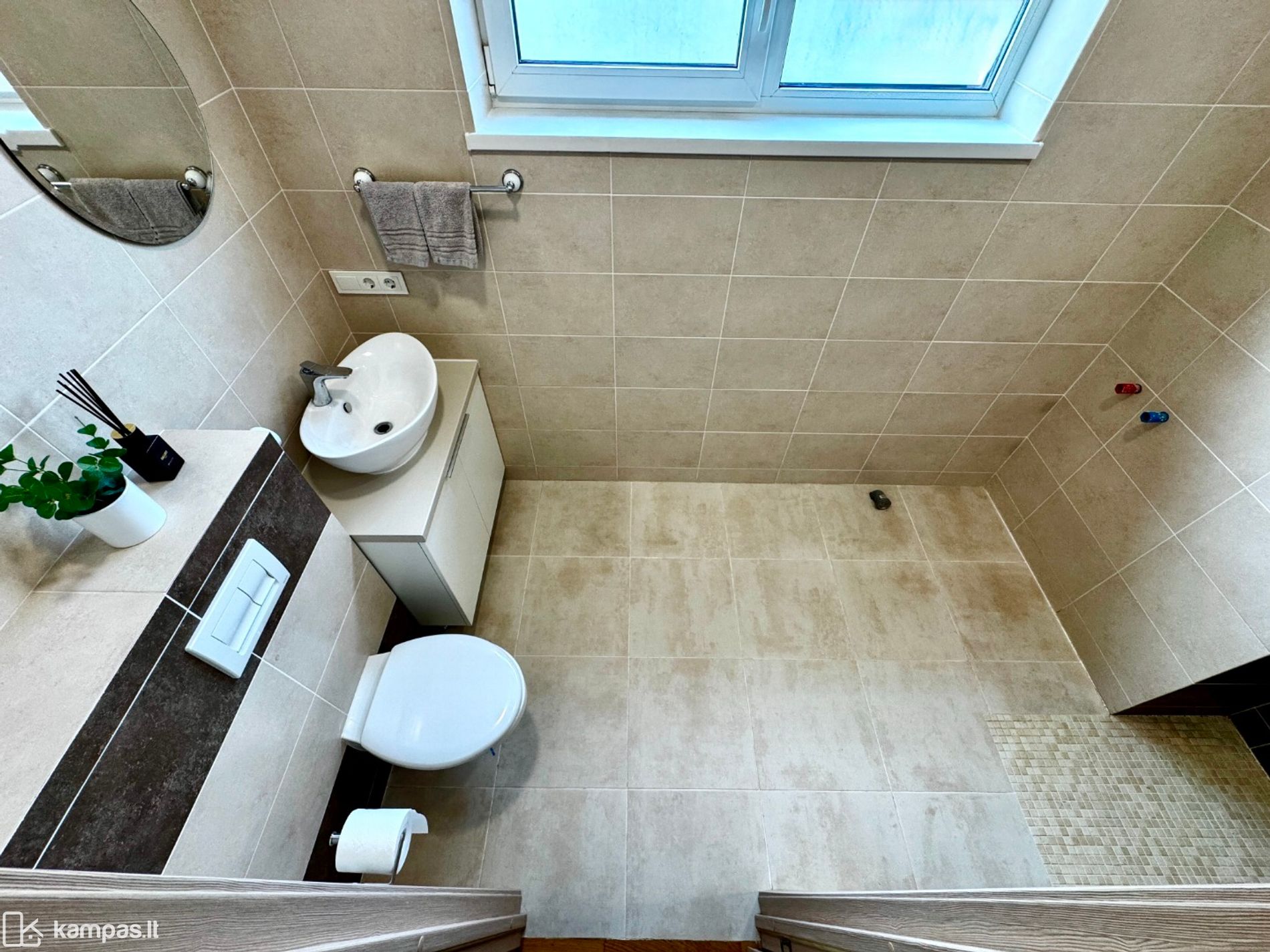 Du sanitariniai mazgai, patogiam gyvenimui be eilių. (Palikta vieta pasistatyti voniai).